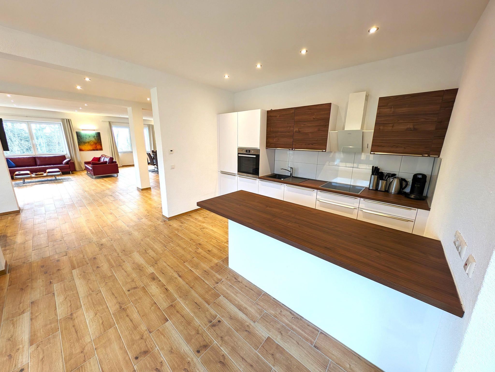 Ganz neu ist unsere mondäne Wohnung Suite Deluxe auf ca. 140 qm auf einer Ebene für bis zu 8 Personen entstanden - ohne Stufen und mit ebenerdiger kleiner Terrasse und an den angrenzenden Wiesen.