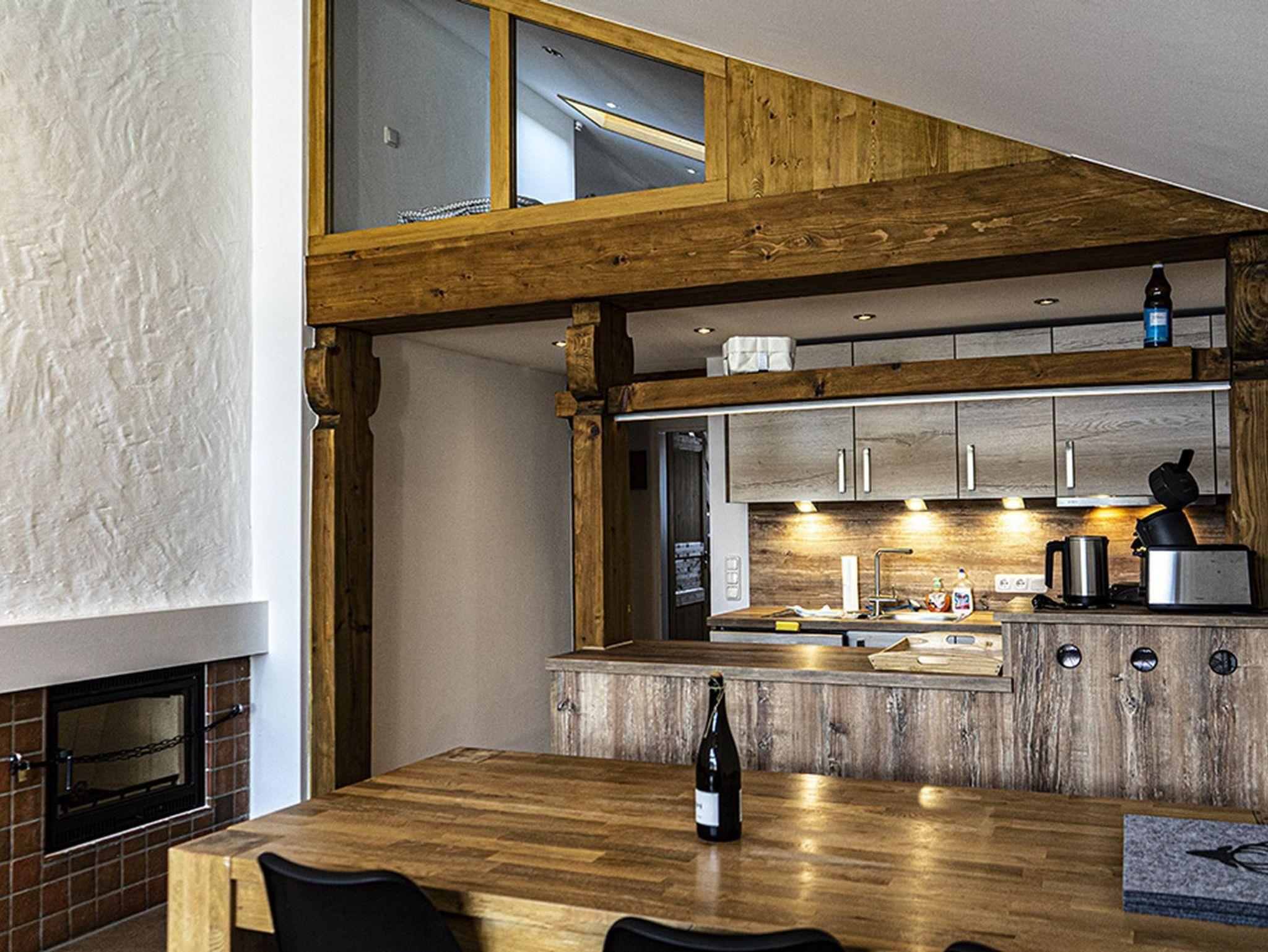 Für erholsamen Schlaf sorgt ein großes Doppelbett im Schlafzimmer sowie zwei Einzelbetten auf der offenen Empore – die perfekte „Kinderhöhle“. Bitte beachten Sie: Die Empore verfügt über keine Tür und eine niedrige Deckenhöhe, ideal für kleine Abenteurer.