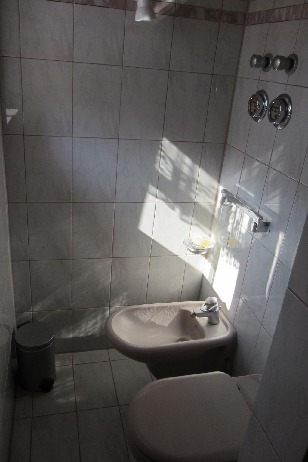 1 bedroom with double bed (2 metres long and 1.80 metres wide), TV, east-facing balcony; 1 bedroom with 2 single beds (2 metres long and 0.90 metres wide); bathroom with shower, washbasin and separate WC and bidet; pets: Dogs are not allowed in the flat.