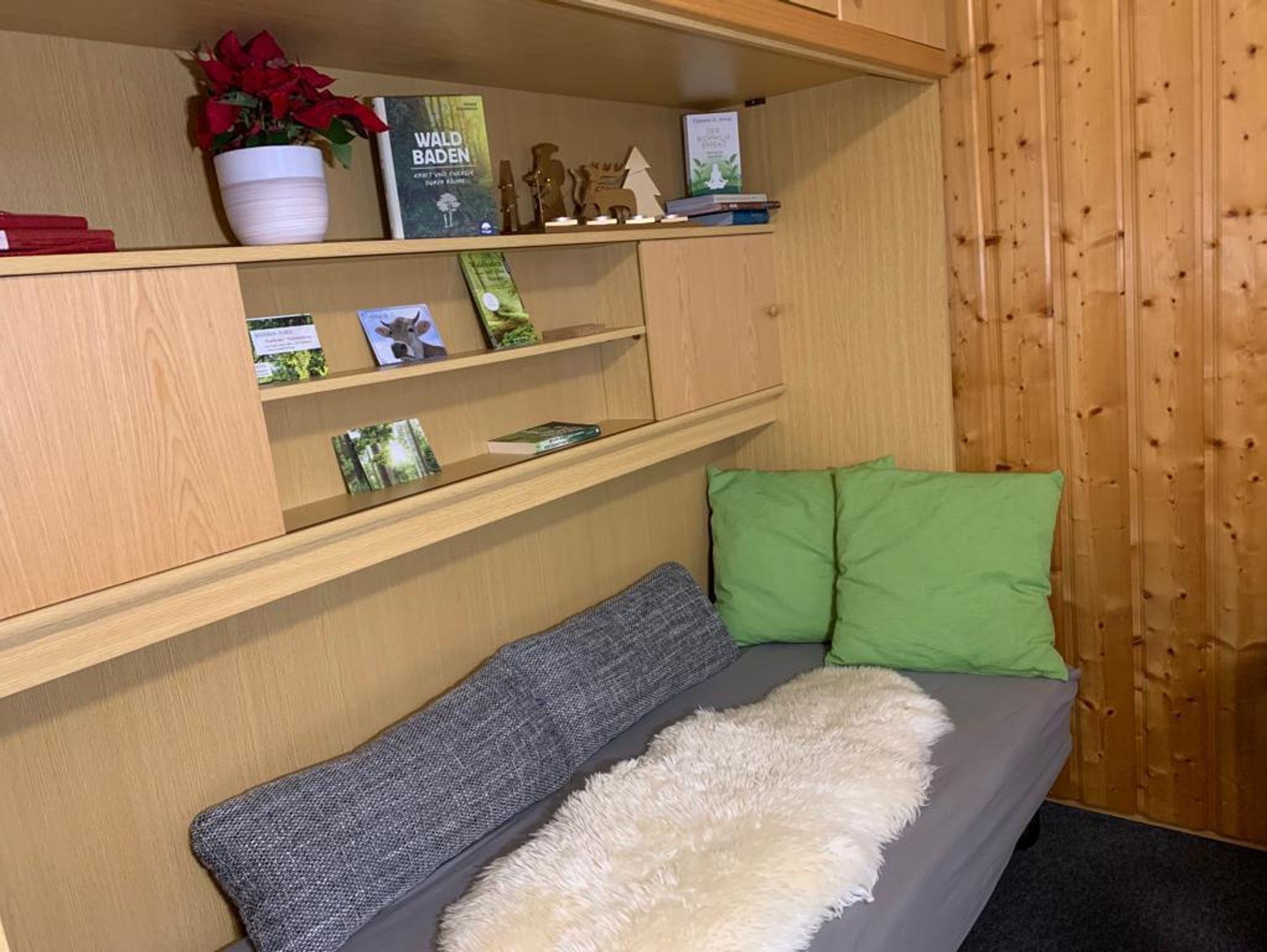 Das Apartment bietet alles, was man für einen erholsamen Urlaub braucht. (Inclusive zahlreicher Literatur zum Thema Waldbaden.