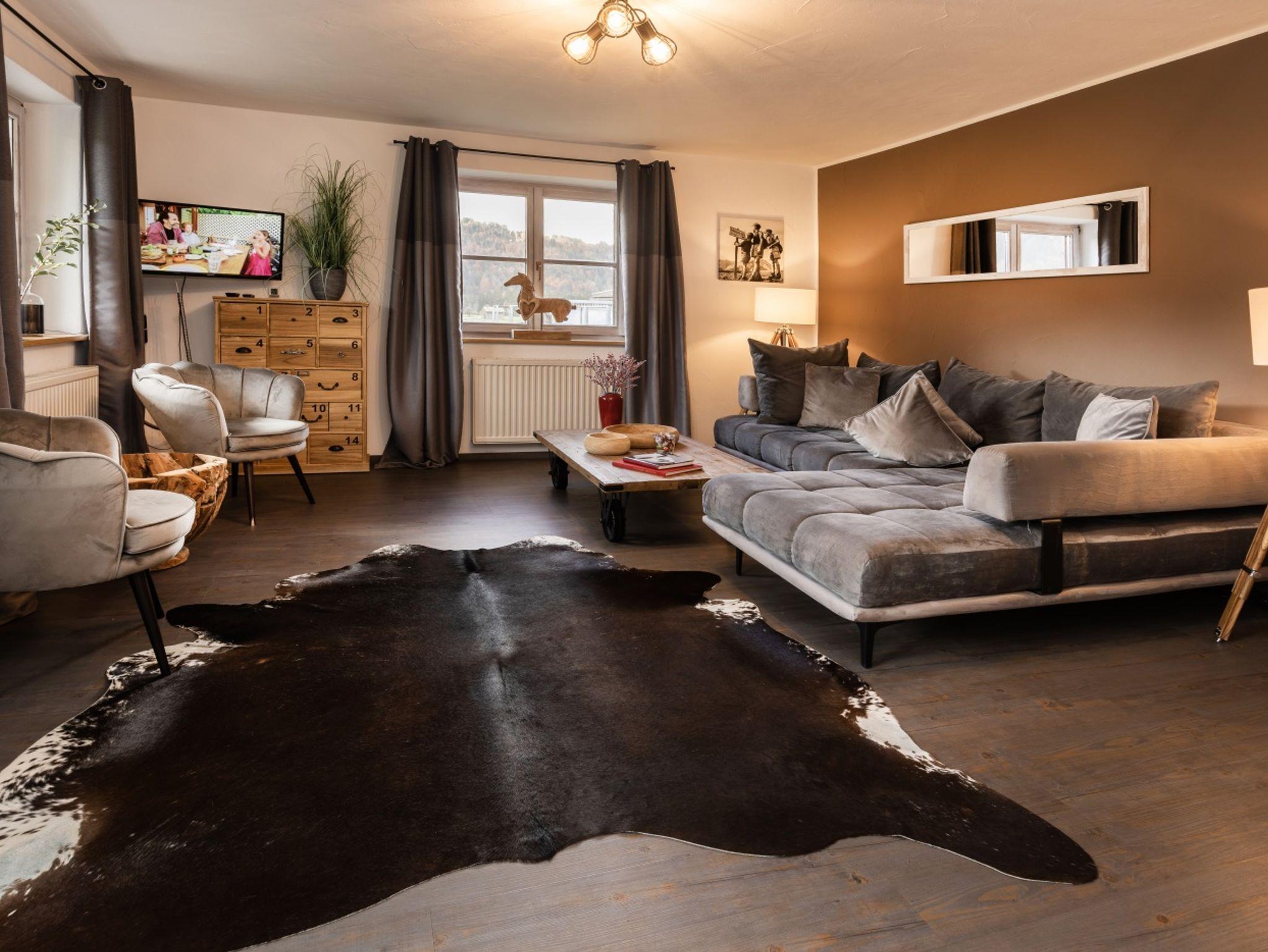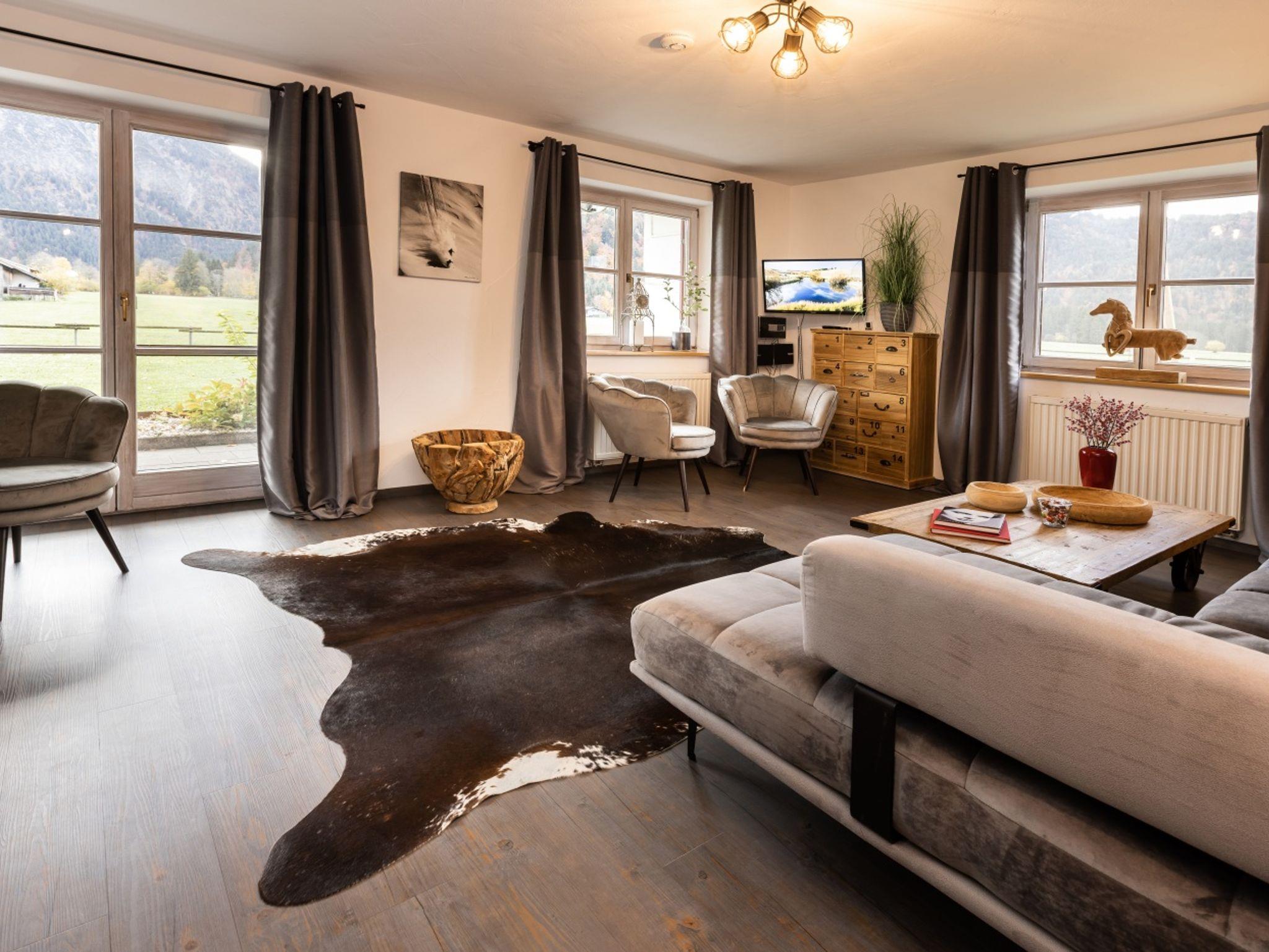Die helle 5-Sterne-Ferienwohnung Rosmarin liegt im Erdgeschoss und hat eine sonnige Süd-Terrasse mit Blick über Wiesen bis in die Berge. Zwei Schlafzimmer und eine große Küche mit Esstisch im Landhausstil laden zum Entspannen ein.