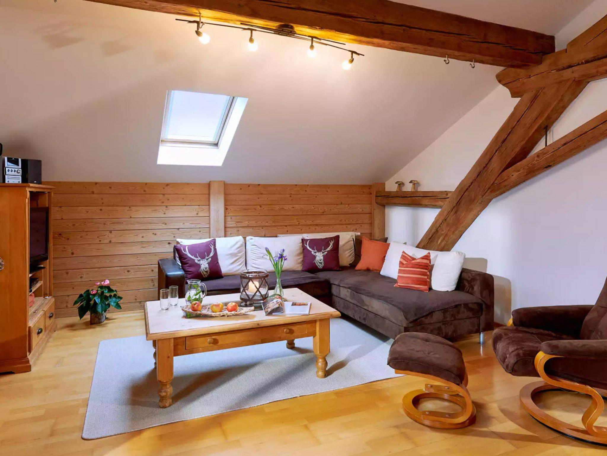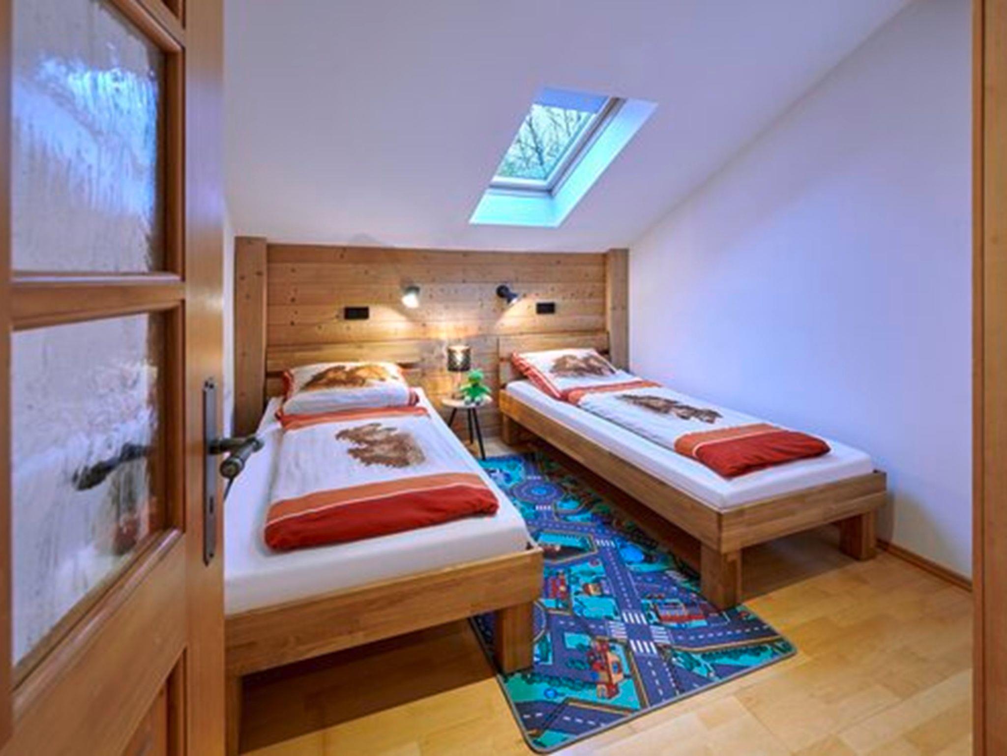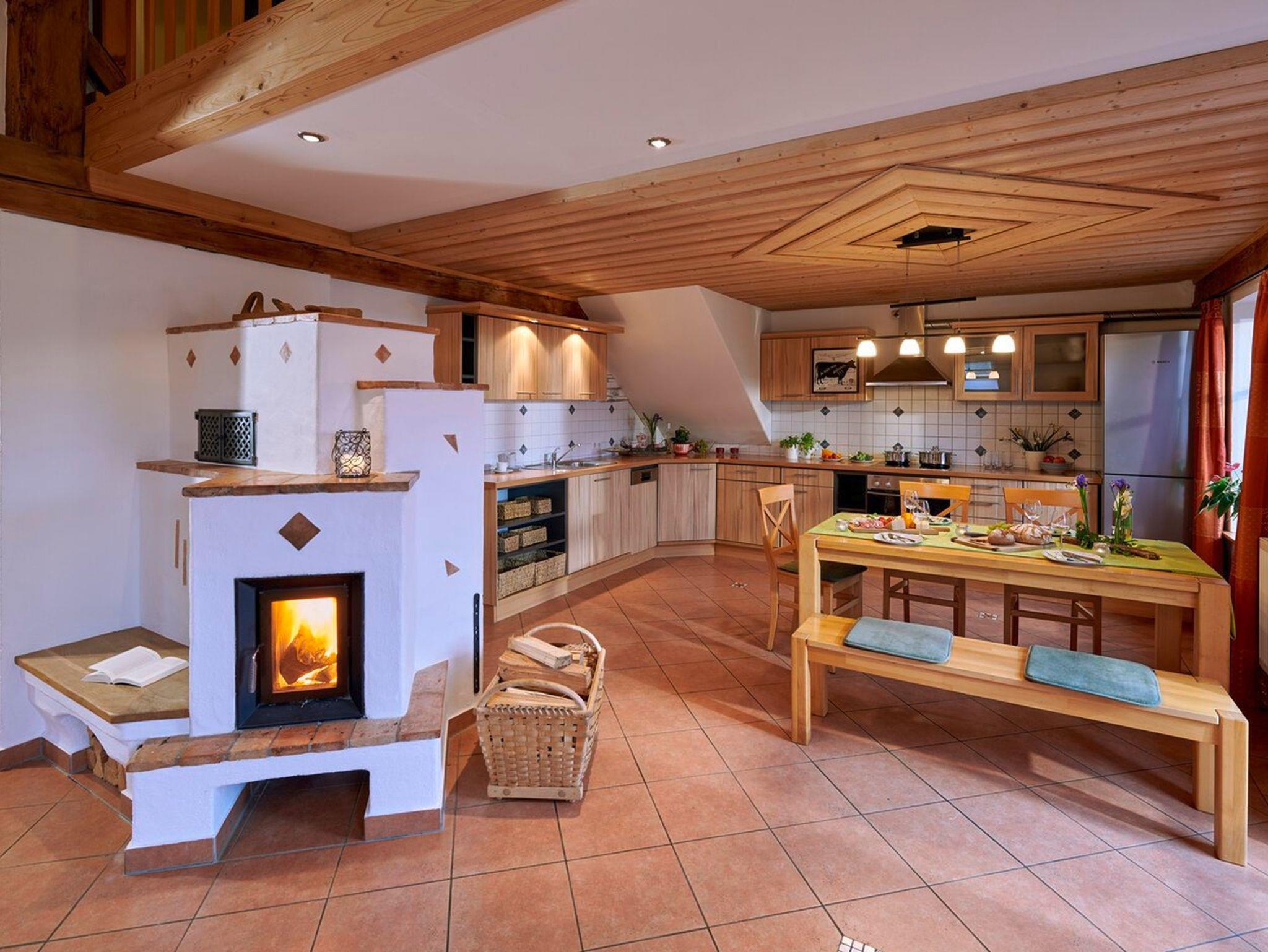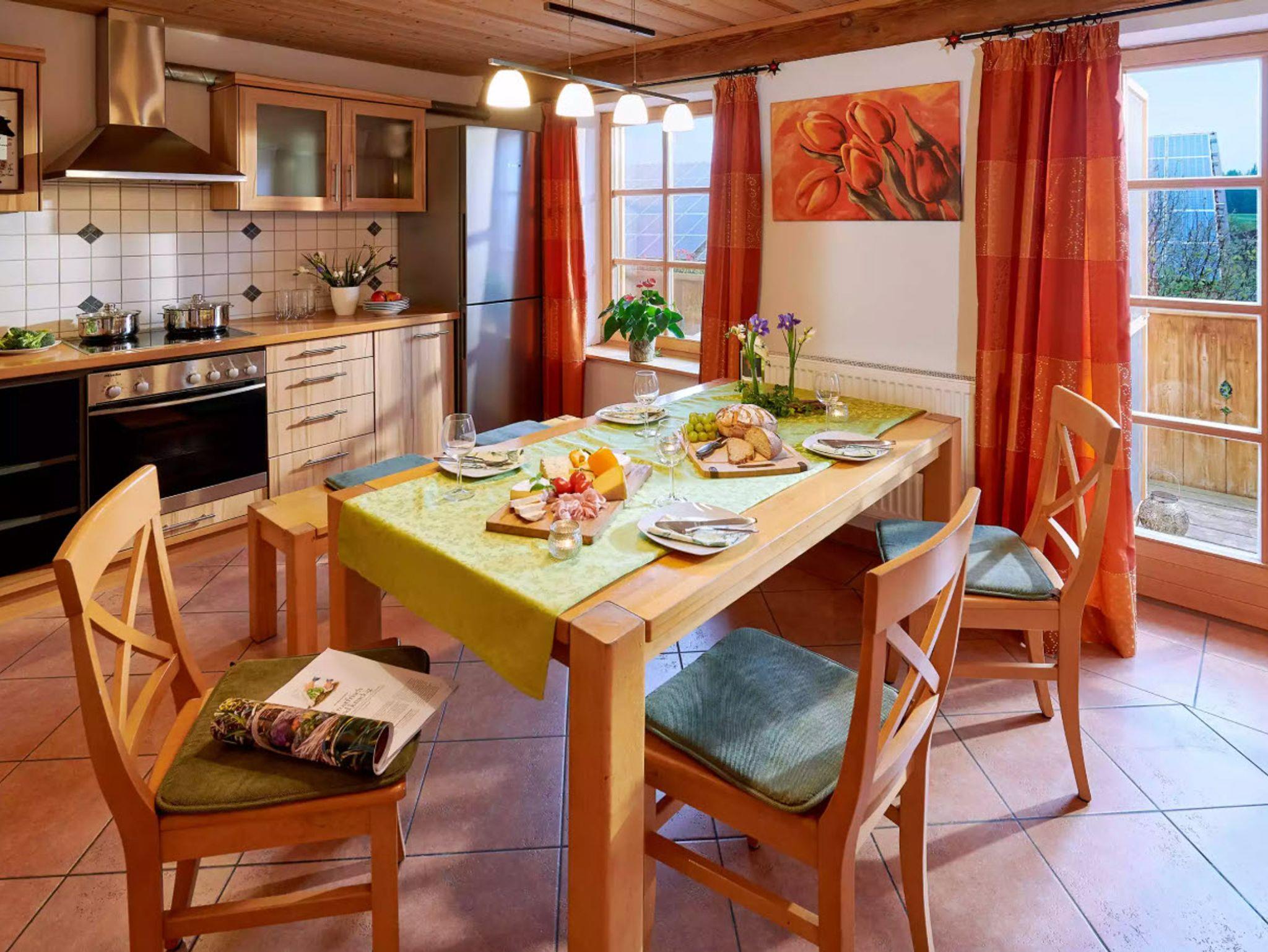 Die großzügige Komfort-Ferienwohnung Waldblick im 2. Obergeschoss des Bauernhauses bietet auf 90 qm ausreichend Platz für 2 bis 4 Personen. Die komfortabel ausgestattete Nichtraucherwohnung verfügt über zwei Schlafzimmer mit Doppel- und Einzelbetten. In der urigen Stube zieht der absolut kindersichere Kaminofen alle Blicke auf sich und sorgt in der kalten Jahreszeit für wohlige Wärme. Handgeschmiedete Beschläge, die Echtholzdecke, das 100 Jahre alte Leinen und die rustikale Küchenzeile verleihen der Essküche einen besonders heimeligen Charme. Dazu tragen auch das bequeme Bauernsofa und die stilvolle Essecke bei. Der möblierte Balkon mit freiem Blick in die Weite der Natur rund um den Berndlhof runden den Wohnkomfort der Ferienwohnung Waldblick ebenso ab wie das Badezimmer mit Badewanne und Dusche.