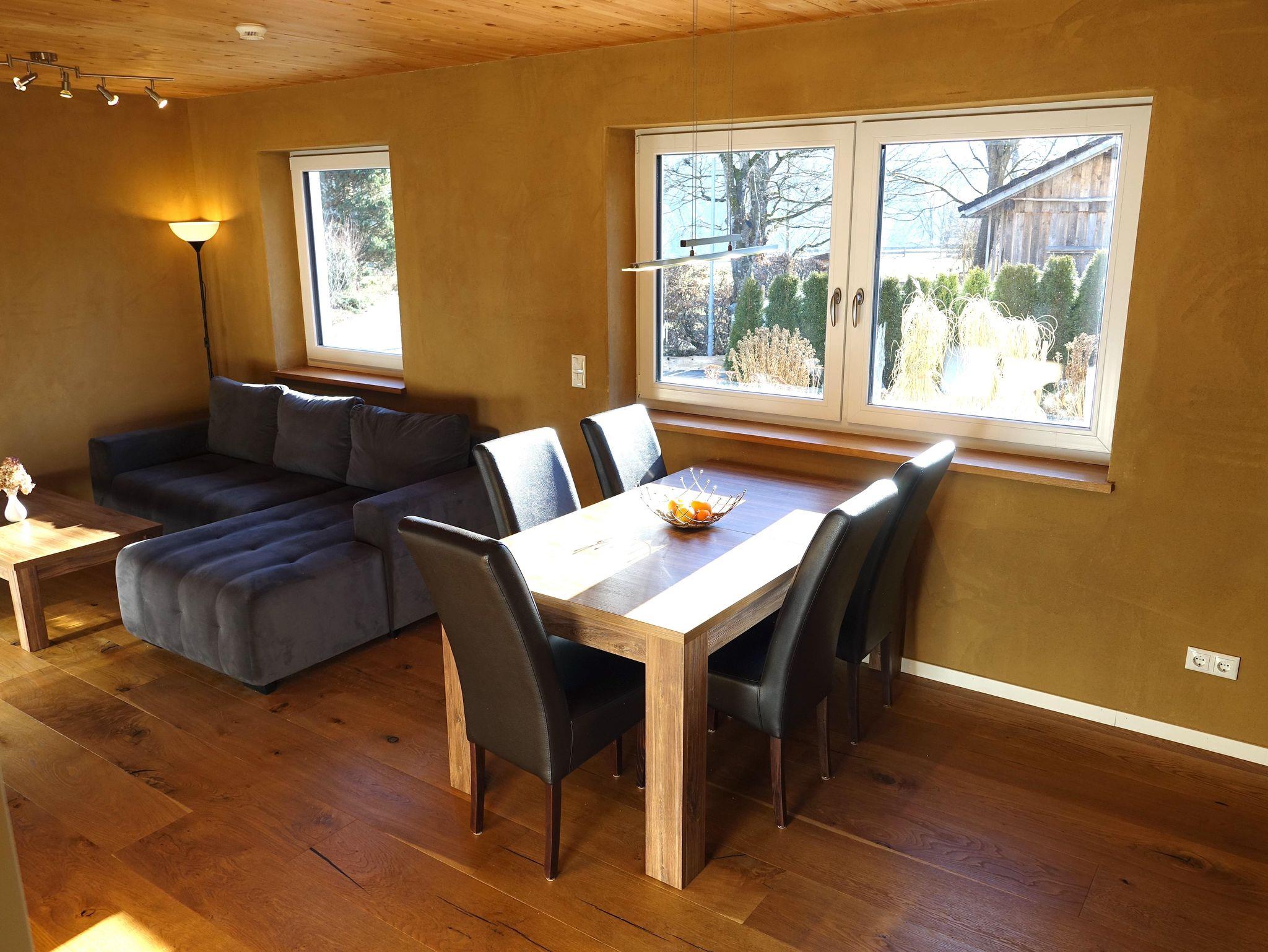 Alle Ferienwohnungen mit je ca. 65 m² befinden sich in einem neuerbauten ökologischem Familienhaus. Für bestes Raumklima sorgt je Wohnung eine zentrale Lüftungsanlage, atmungsaktiver Lehmputz und Fußbodenheizung.