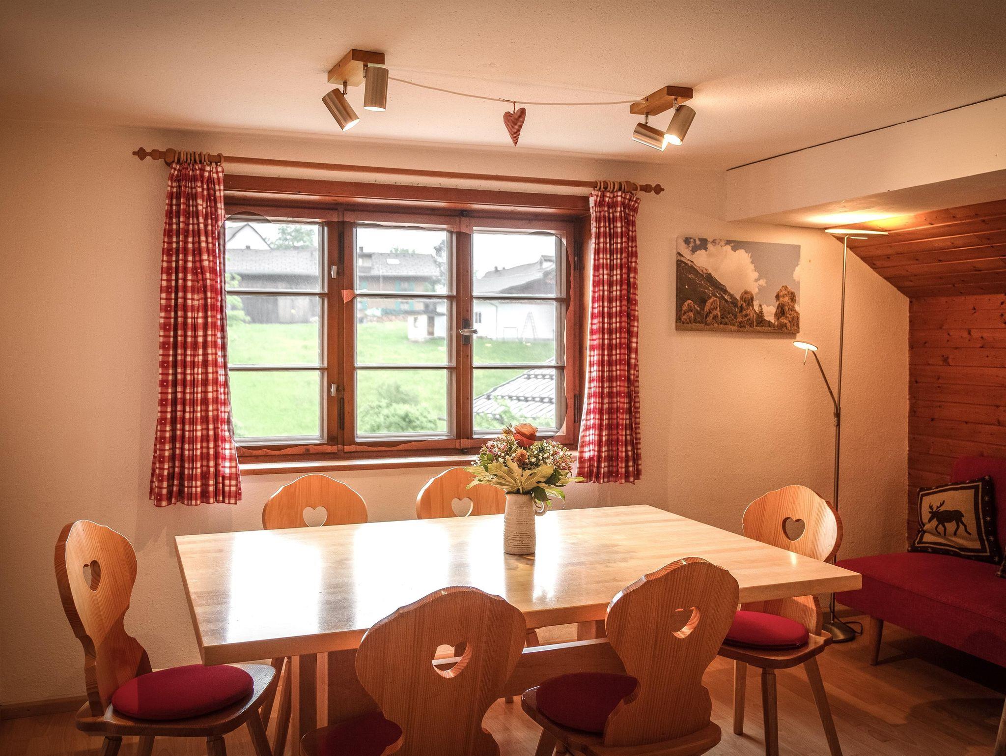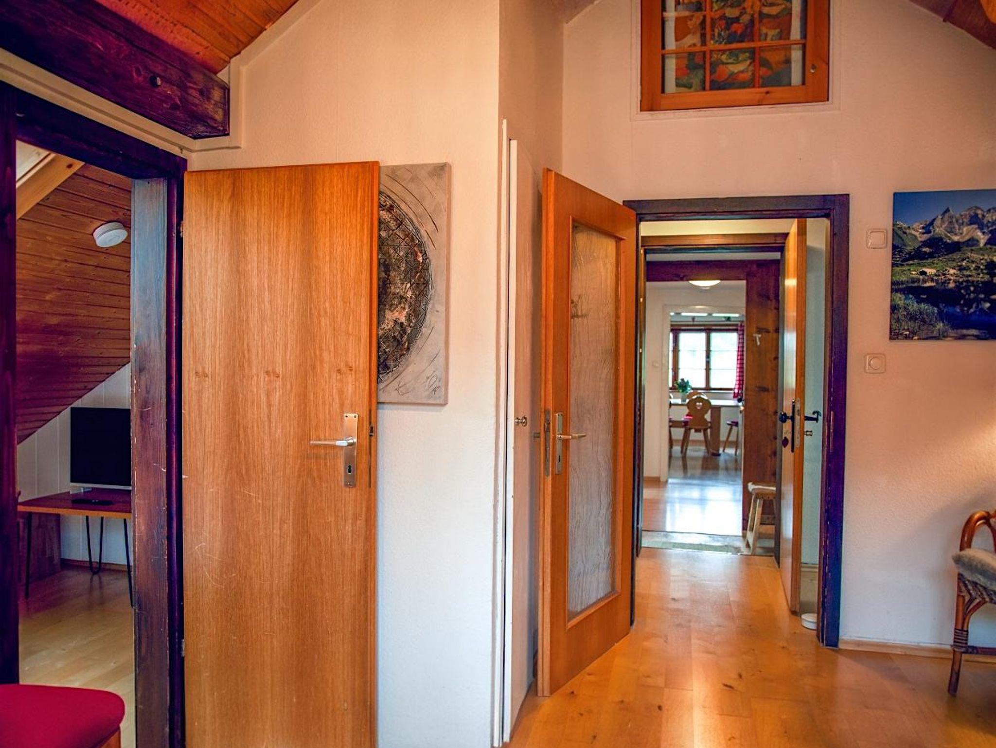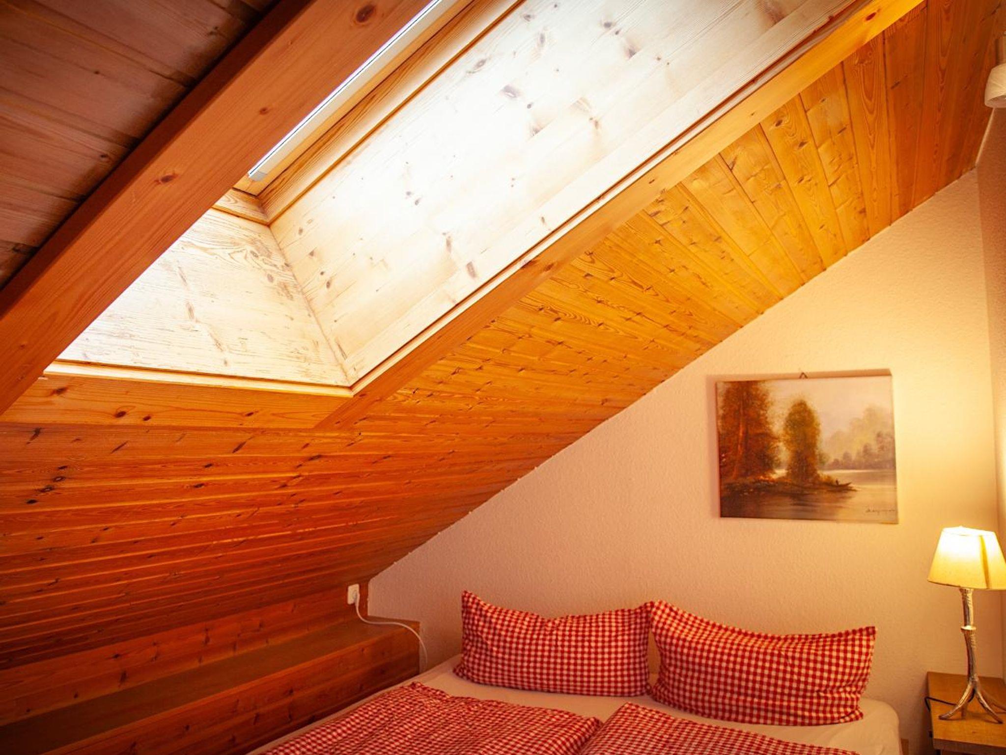 Die komfortabel ausgestattete große Ferienwohnung mit Naturholz-Dachschrägen erstreckt sich mit 100 qm über das gesamte Dachgeschoss des Hauses. Schöner Blick in die Berge und ins Dorf.