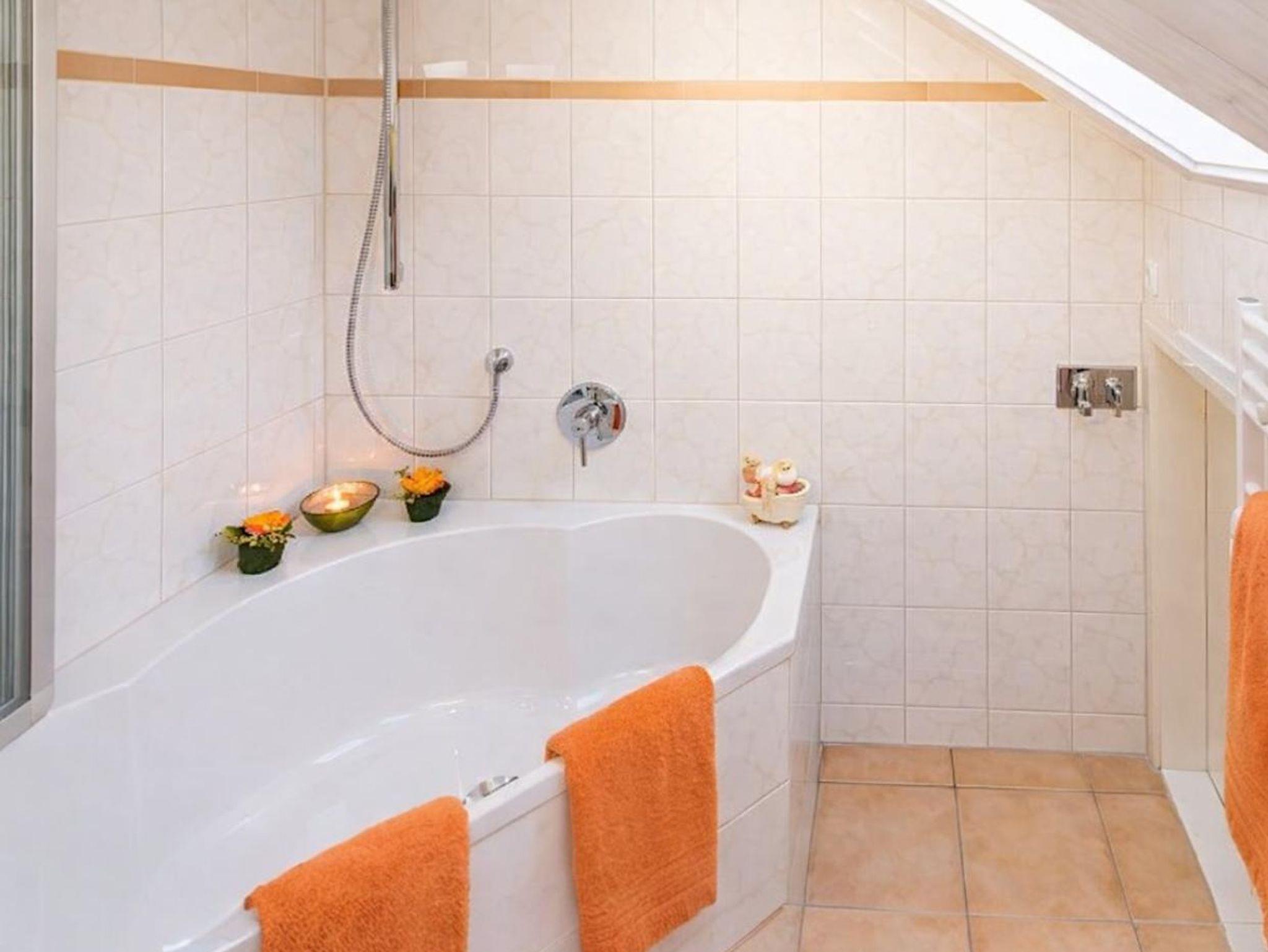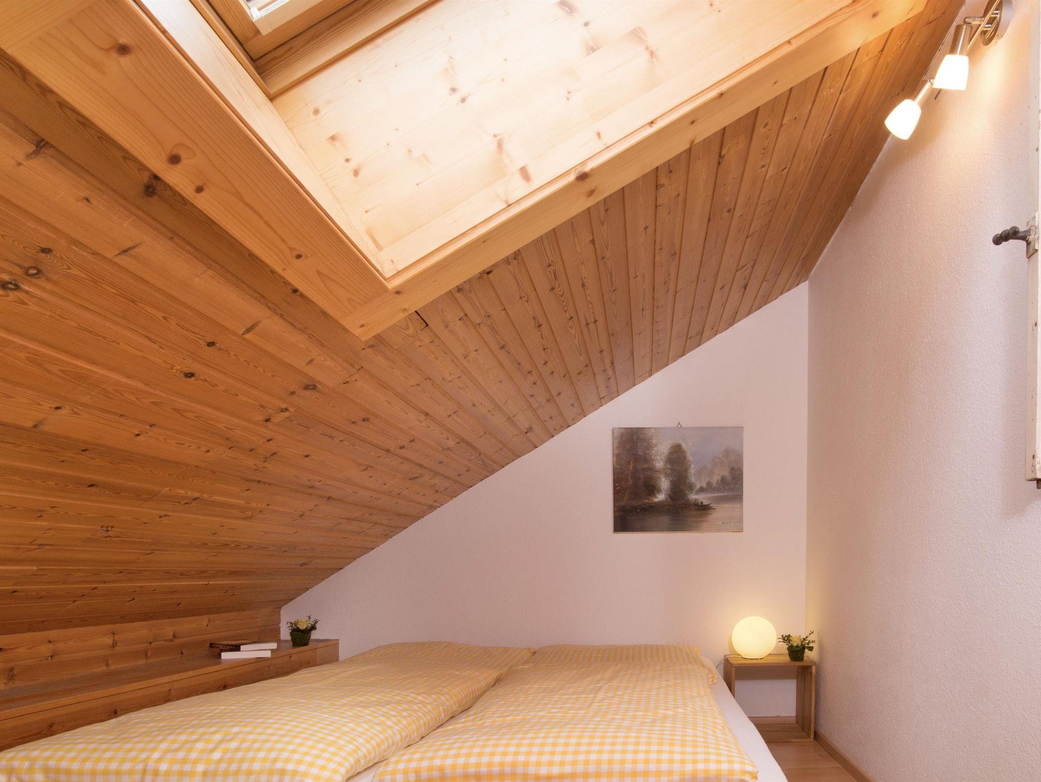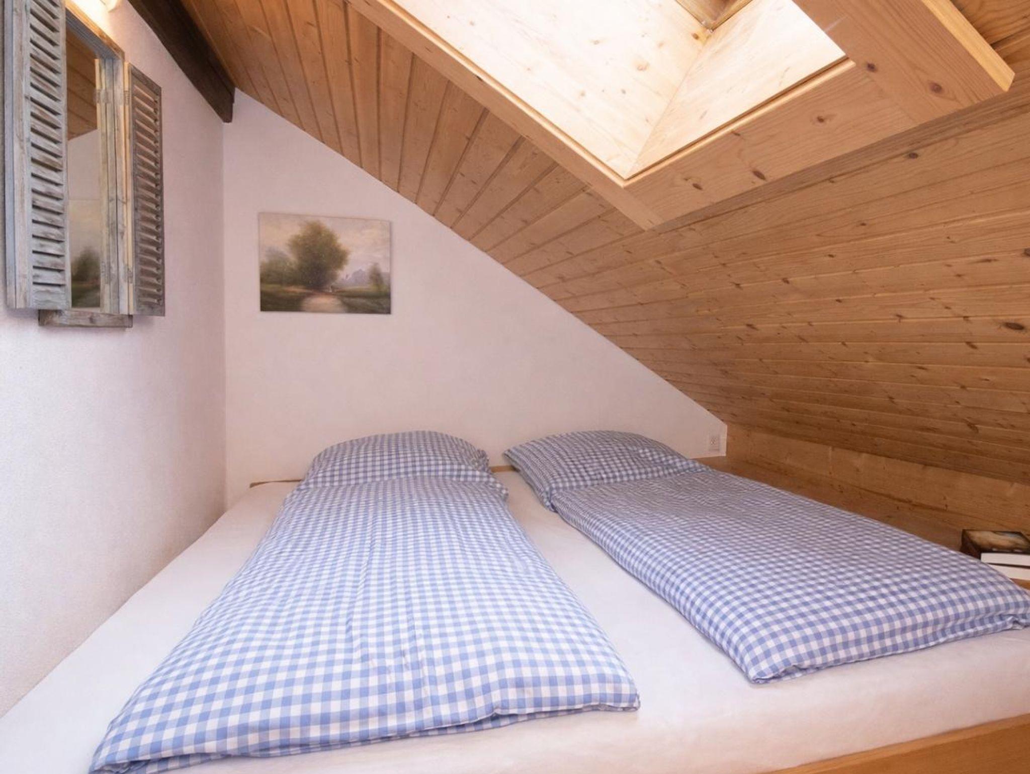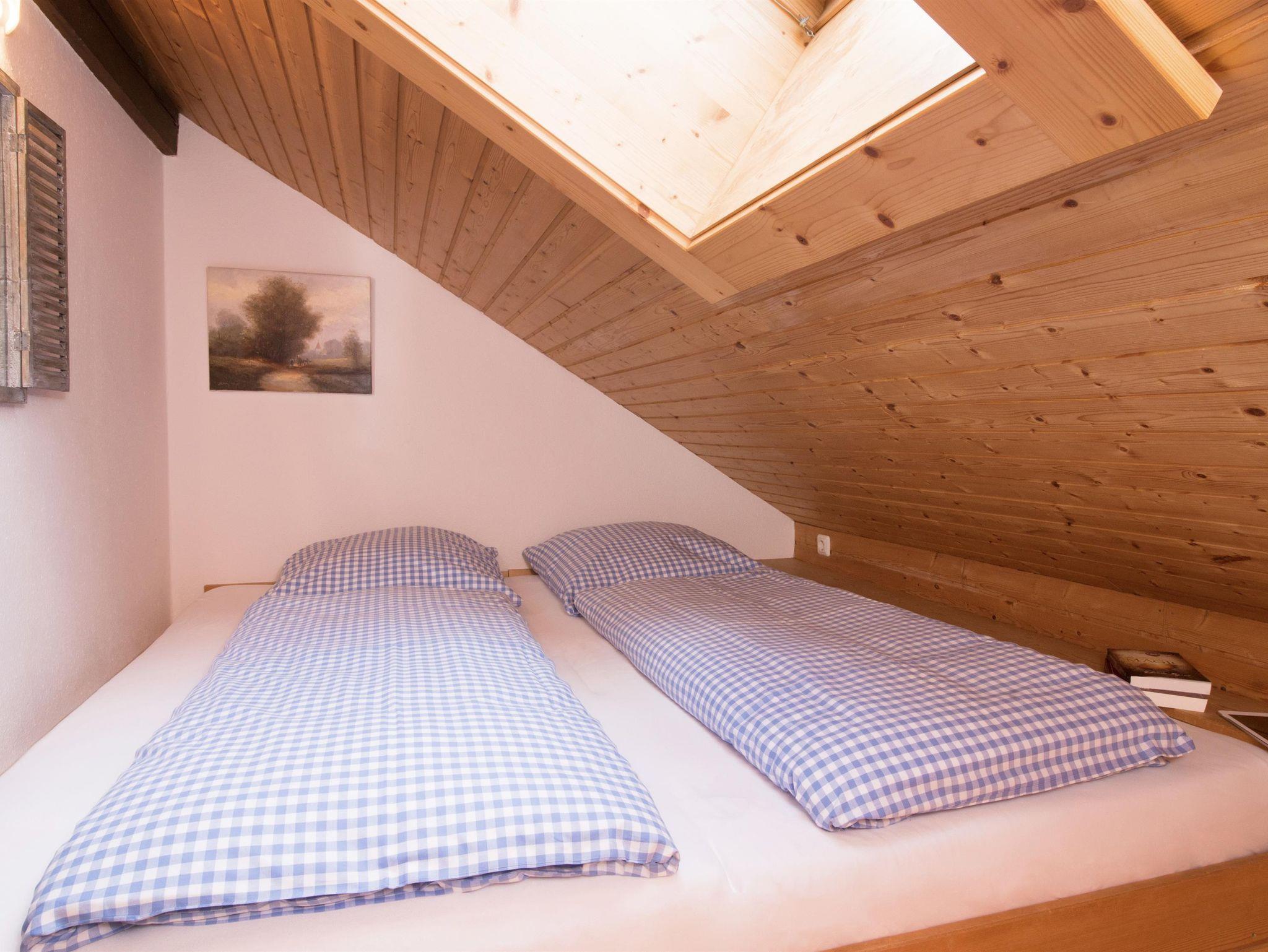 Die komfortabel ausgestattete große Ferienwohnung mit Naturholz-Dachschrägen erstreckt sich mit 100 qm über das gesamte Dachgeschoss des Hauses. Schöner Blick in die Berge und ins Dorf.