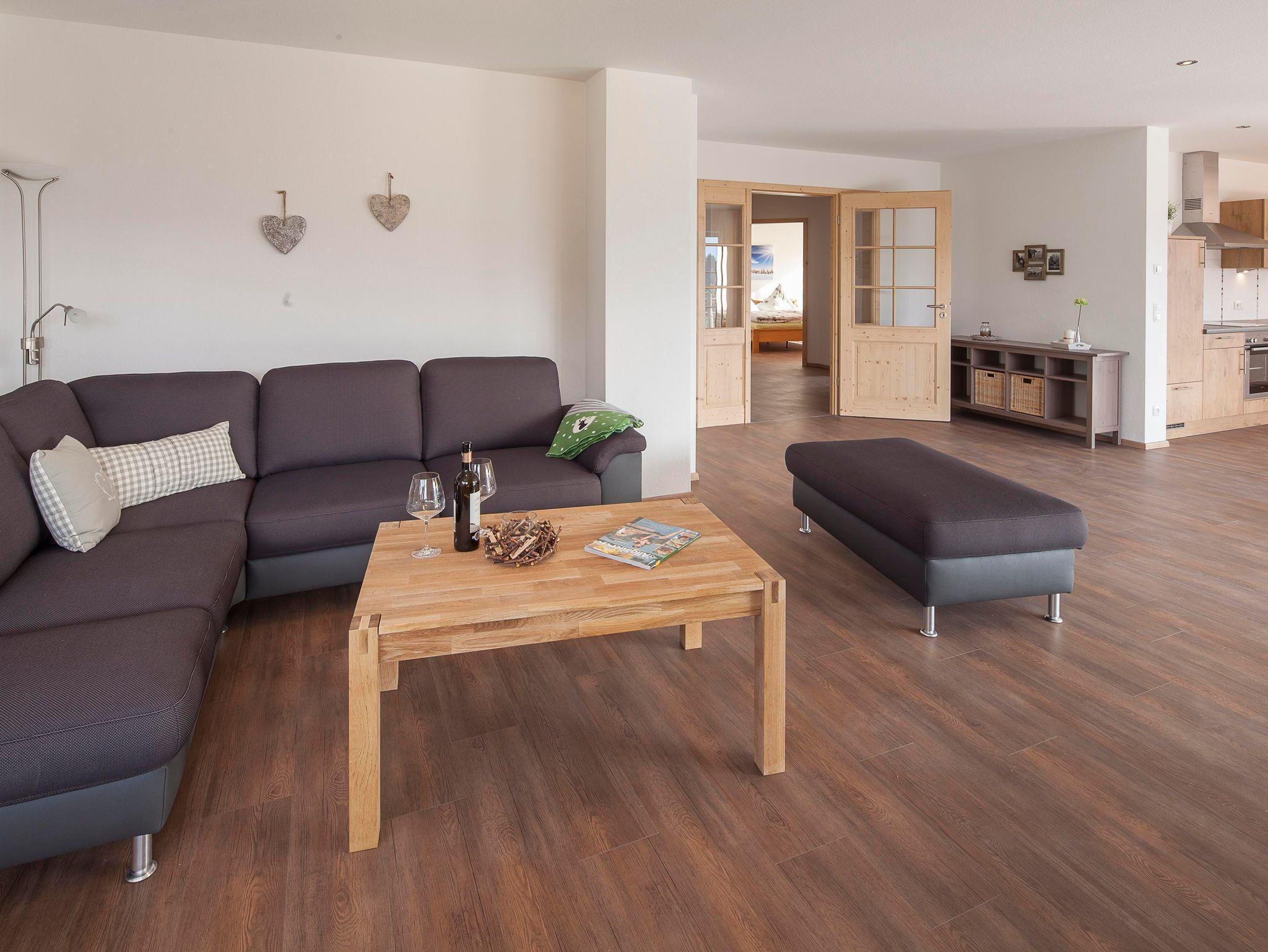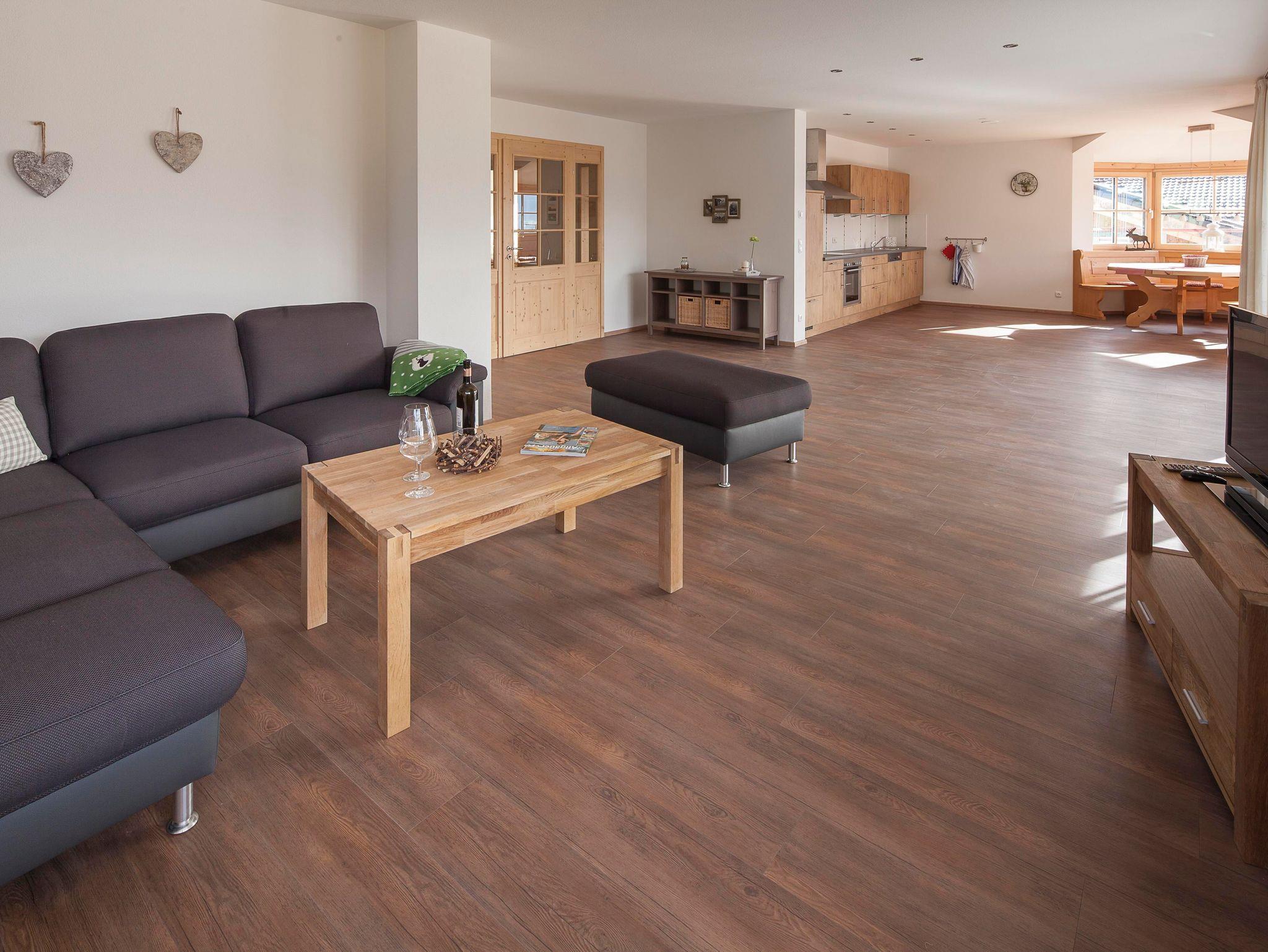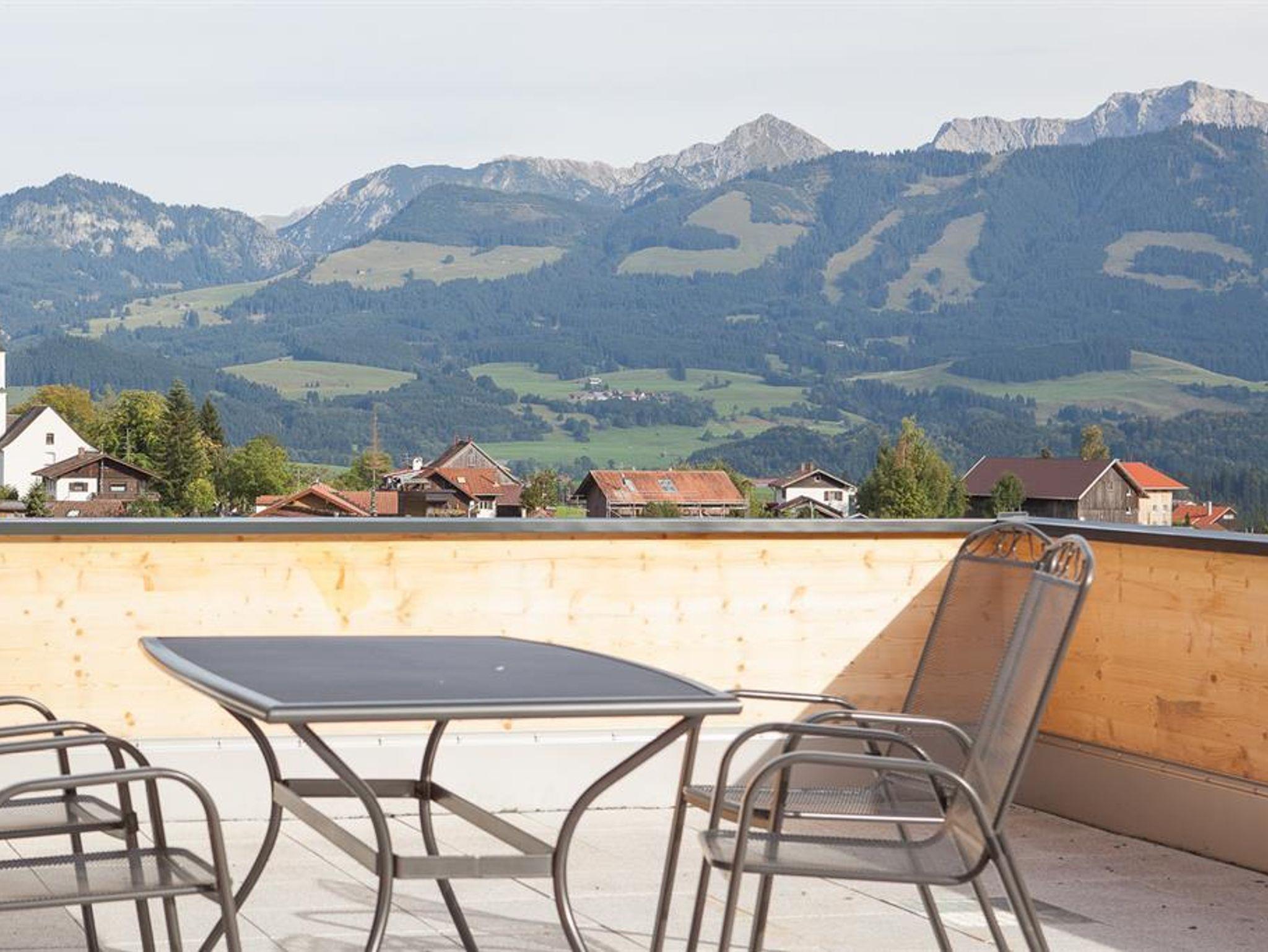 Großzügig, geschmackvoll eingerichtete Ferienwohnung Weiherkopf(120 m²) im EG. Von großer Süd- Dachterrasse traumhafter Blick in die Allgäuer Berge.