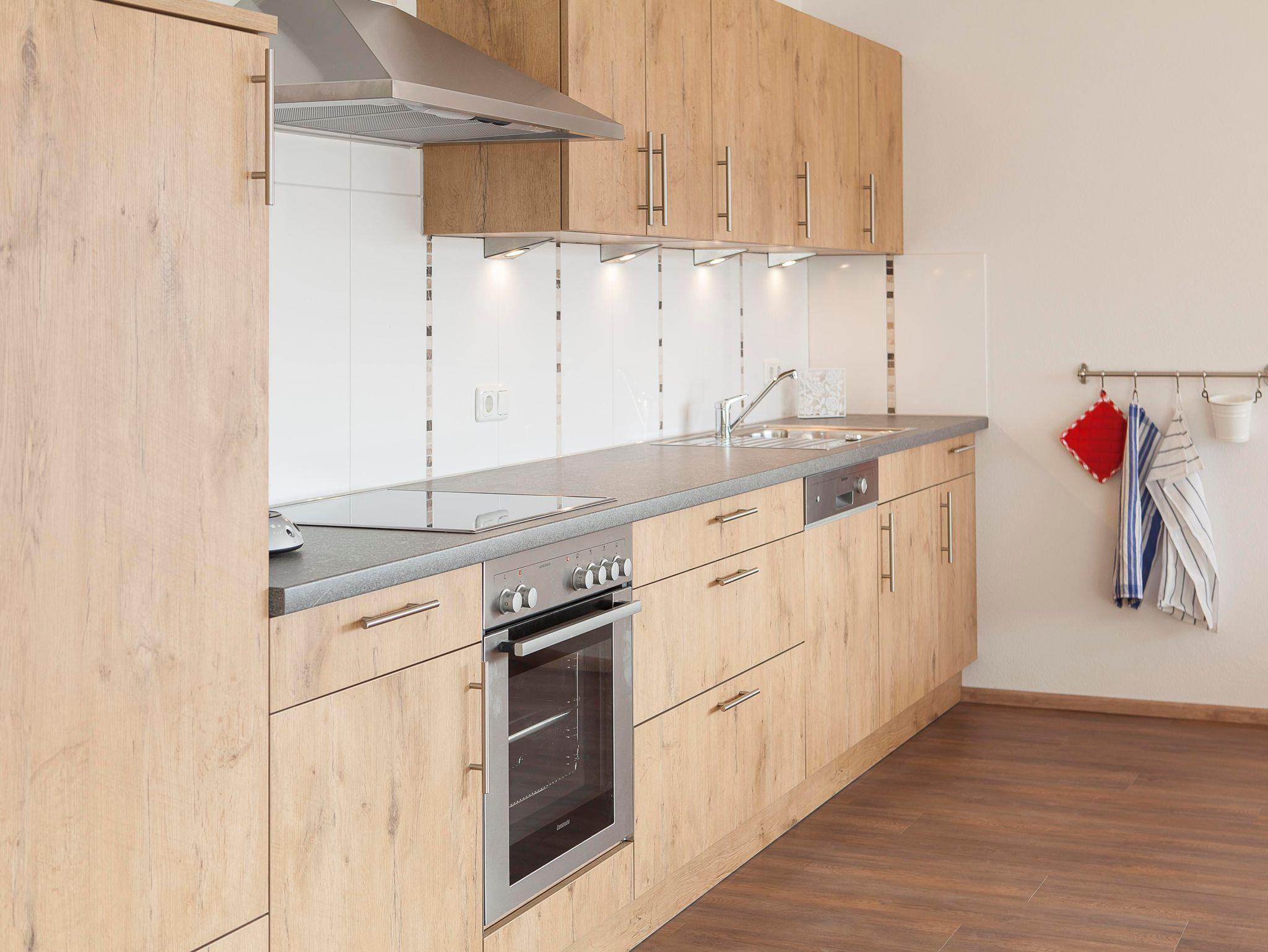 Zwei getrennte Schlafzimmer mit je 1 Doppelbett (200x200). Modernes Badezimmer mit Tageslicht inkl. Dusche, Badewanne, Doppelwaschbecken, WC. Seperates Gäste WC. Voll eingerichtete Küche im großzügigen Wohnraum. Essecke im Erker und Ecksofa mit TV.