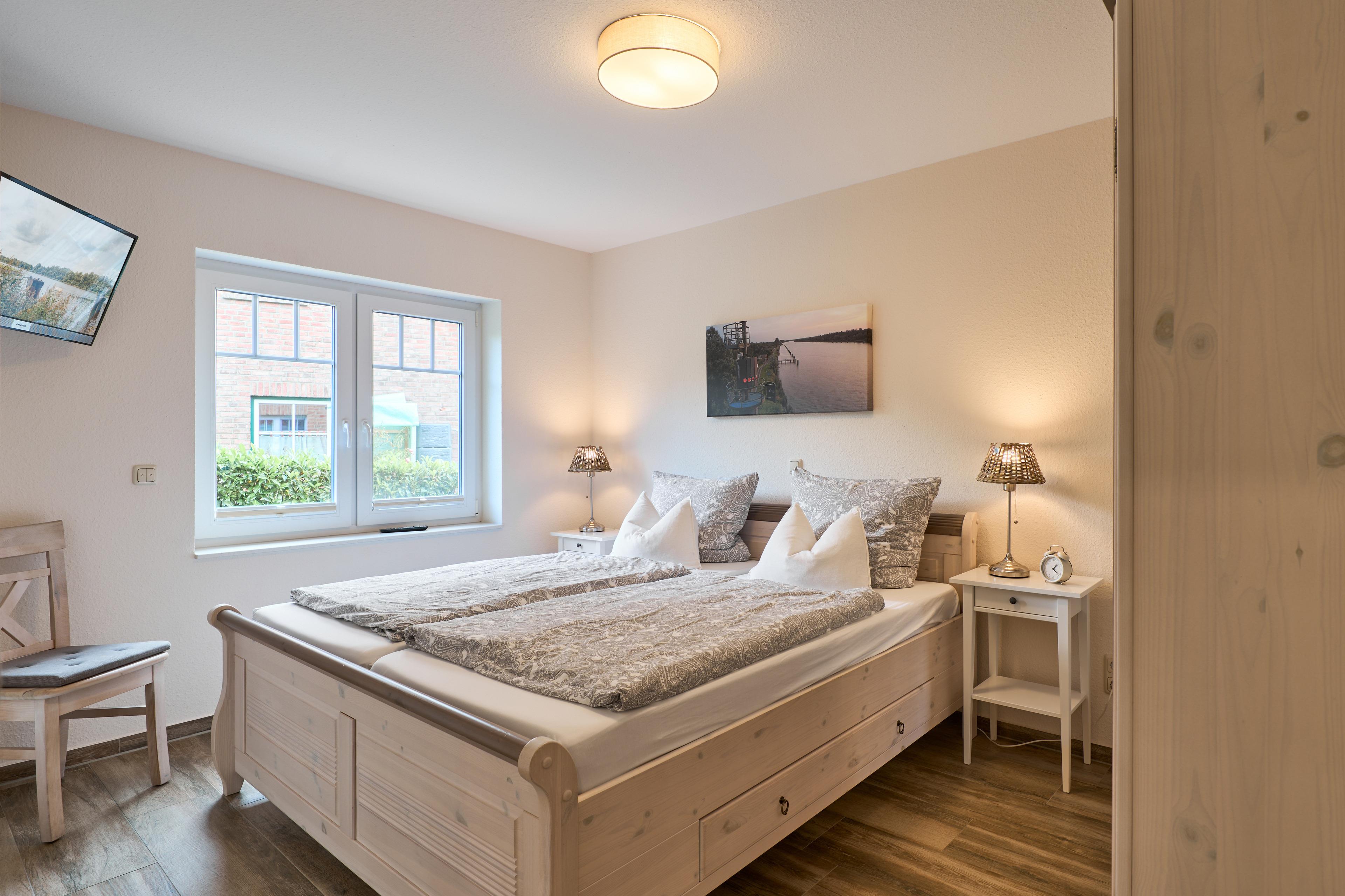 Die Ferienwohnung Schiffsdeck im Erdgeschoss ist hochwertig und geschmackvoll im hellen, modernen Landhausstil eingerichtet. In der lichtdurchfluteten Wohnung finden Sie viel Platz und Komfort für Ihren Traumurlaub. Der großzügige Schnitt der Wohnung lädt zum Erleben ein, ob gemeinsam oder lieber alleine, hier genießen Sie viel Freiraum, aber auch individuelle Rückzugsorte. Auf der großen Sonnenterrasse, die direkt vom Wohn- und Essbereich begehbar ist, finden Sie hochwertige Gartenmöbeln, einen Weber Gasgrill und natürlich einen Sonnenschirm. Der Garten mit viel Rasenfläche ist ideal für Familien mit Kindern. Die Wohnung ist bedingt barrierefrei, auf Wunsch steht Ihnen ein mobile Rollstuhlrampe zur Verfügung. Von der Nebeneingangstür zusätzlich zum Haupteingang könne Sie die Wohnung direkt vom Carport aus betreten. Zwei geräumige Schlafzimmer (Doppelbett 180x200) mit TV laden hier nach einem tollen Urlaubstag zum Träumen ein. Die Schlafzimmer haben zusätzlich zu den Plissees elektrische Aussenrollläden, damit Sie auch im Sommer nicht auf einen erholsamen Schlaf verzichten müssen. Der Wohn- und Essbereich bietet mit seinen bodentiefen Fenstern einen herrlichen Blick auf den NOK. Träumen Sie beim Kochen in der hochwertig ausgestatteten Küche von großen Pötten und der weiten Welt oder genießen Sie von der großen Wohnlandschaft das ständige pendeln der Fähre. Die Wohnung ist komplett ausgestattet, neben dem 55 Zoll TV mit DVD Player und Sonoro Soundsystem, im Wohnbereich, finden Sie eine feine Auswahl an Lektüren und Spielen. Unsere kleinen Gäste liegen uns sehr am Herzen, für sie stellen wir Ihnen gerne unsere Kleinkindausstattung zur Verfügung. Genießen Sie entspannte Sonnentage in der sehr gepflegten Gartenanlage mit viel Platz zum relaxen, Kraft tanken, entspannen oder toben und spielen. Staunen Sie über die vorbeiziehenden Schiffe oder beobachten Sie das rege Treiben der NOK- Fähre.