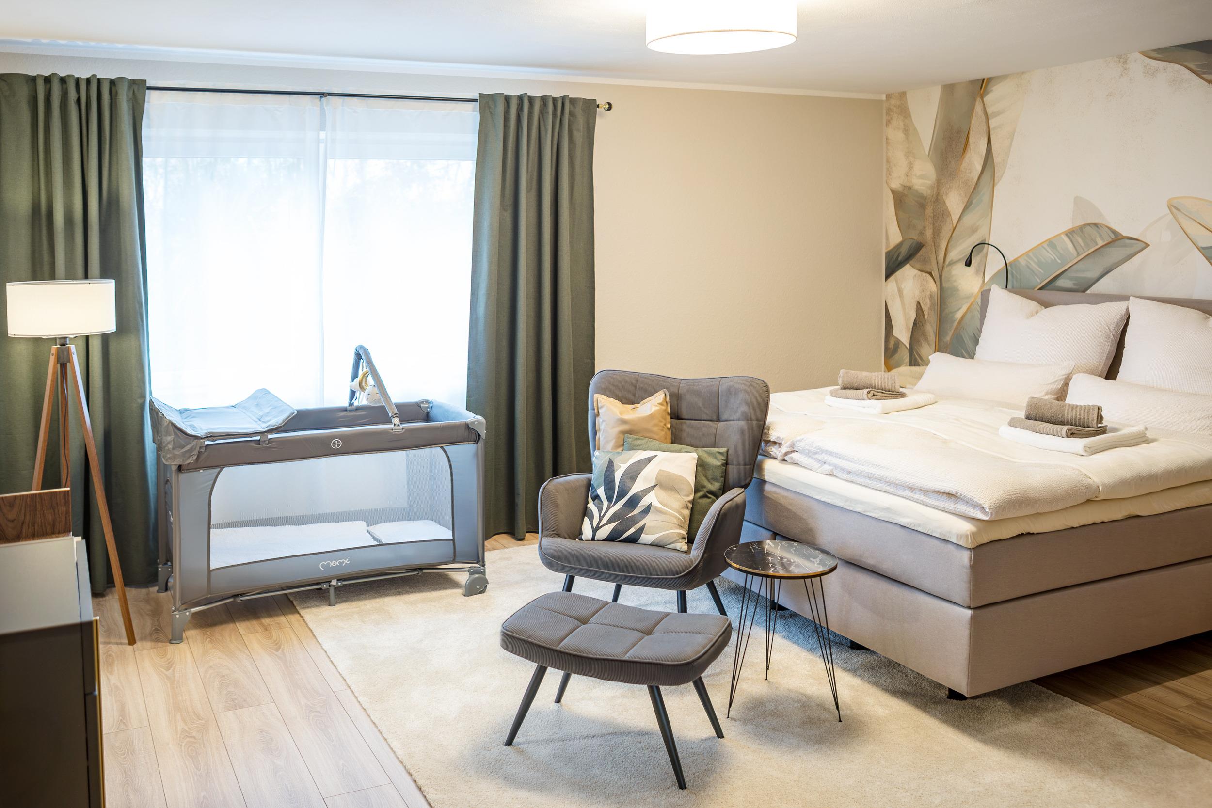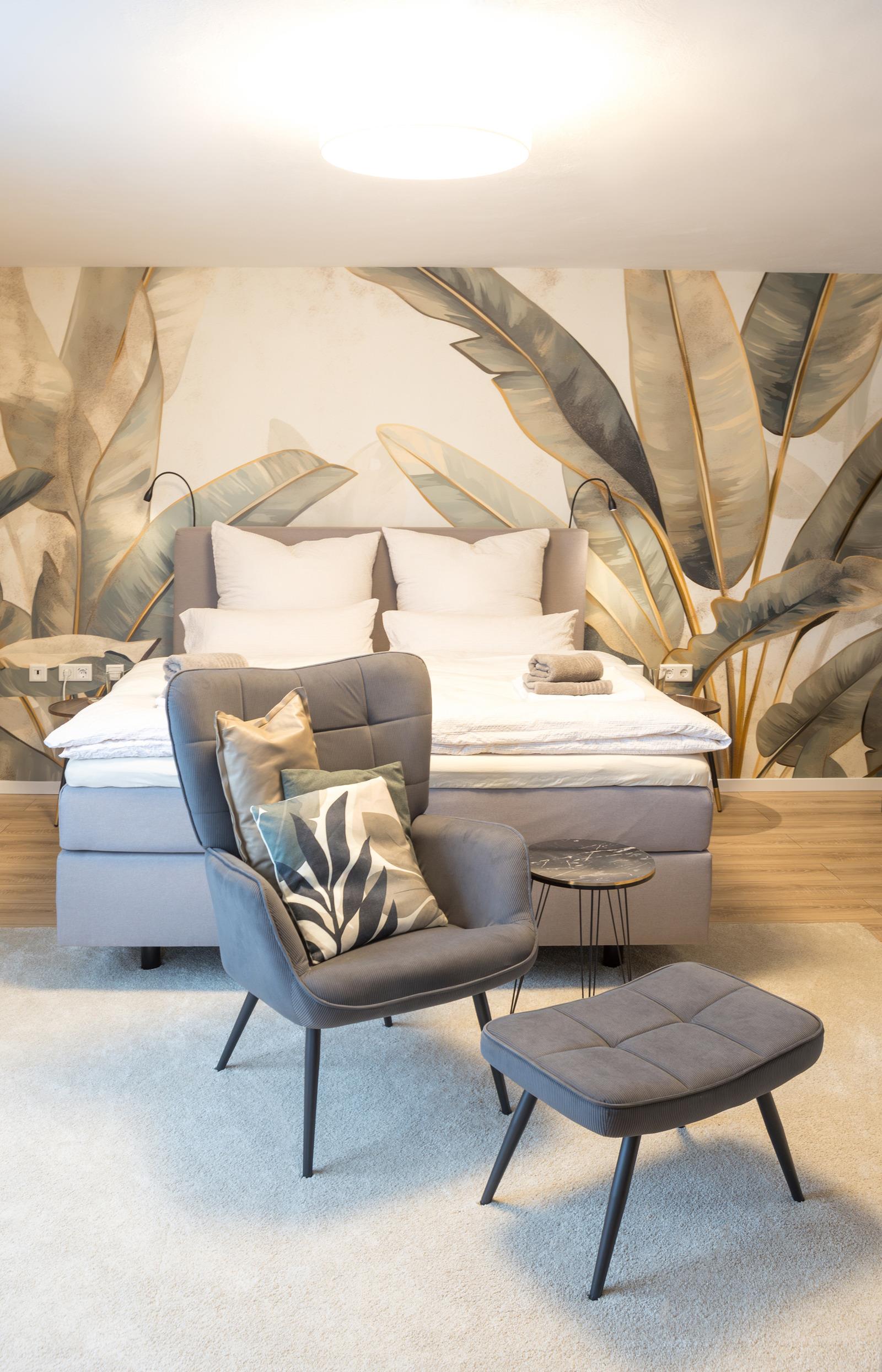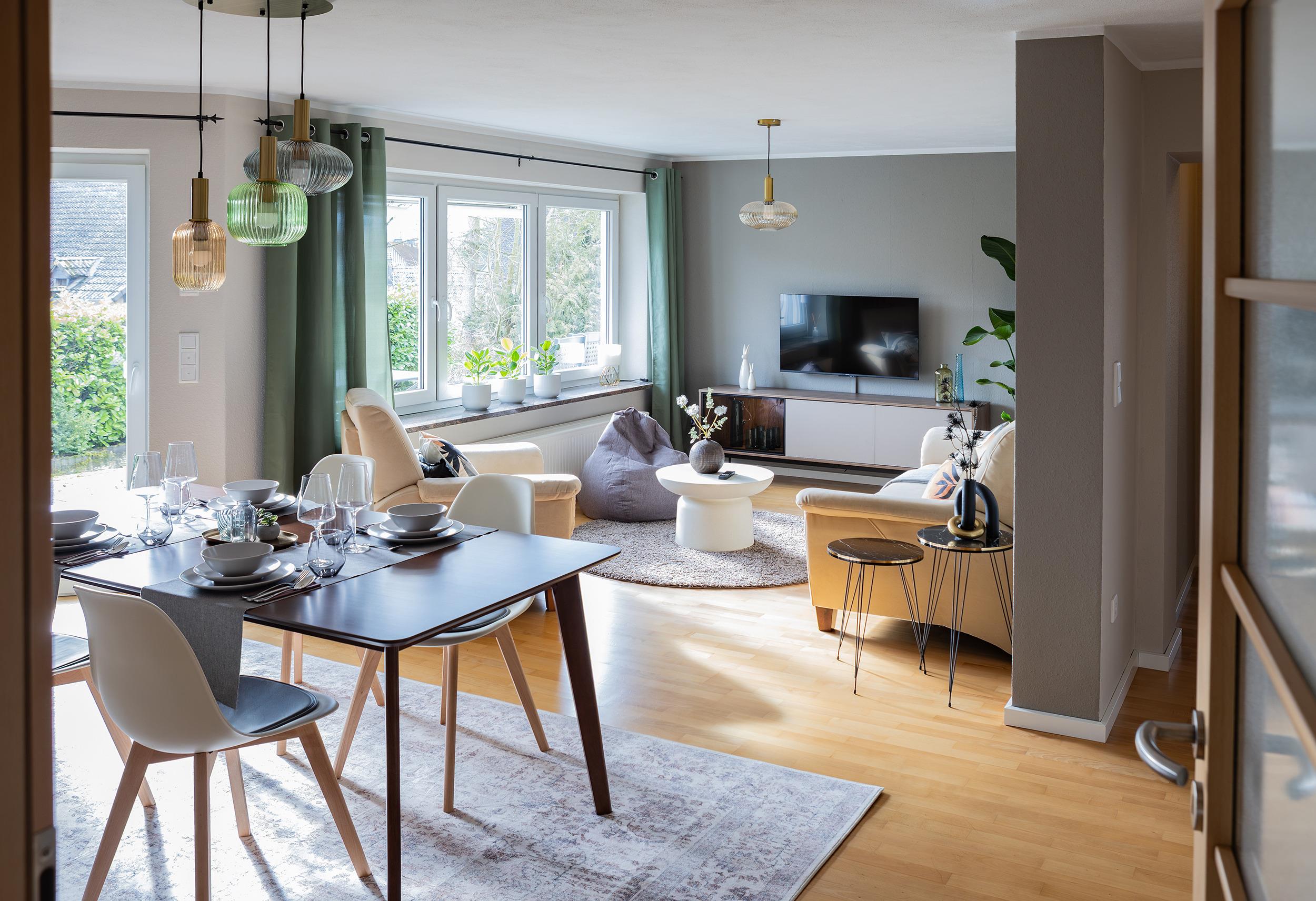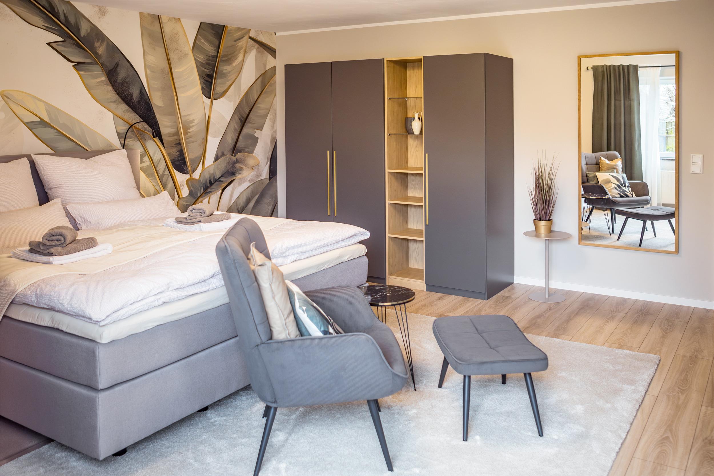 Im Sommer lädt die eigene Terrasse zum chillen und grillen mit einem kühlen Kaltgetränk ein, die Kinder können im Garten spielen. Oder nach einem langen Wintertag auf den Skipisten der Umgebung kannst Du gemütlich vor dem warmen Kamin entspannen. Auch eine "Workation" Auszeit ist mit der neuen Glasfaserleitung optimal möglich. Die stilvolle Designeinrichtung in dezenten Naturtönen von Beige über Grau, Grün und Gold wirkt beruhigend und zurückhaltend.