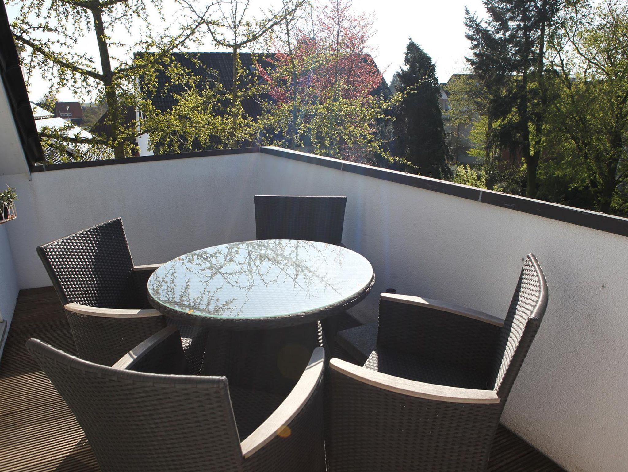 FeWo 1: Exklusive, neuwertige Wohnung im 2. Obergeschoss für max. 4 Personen (55m2) Südseite mit großen Fenstern, 10m2 großer Balkon (Dachterasse) mit Gartenblick. 1 Schlafzimmer mit Doppelbett. Wohnzimmer mit Ecksitzgruppe (Doppelschlafcouch), Esstisch mit 4 Stühlen, Kabel-TV, Fernseher 80 cm (32“) HD mit 30 Programmen, DVD-Player, Telefon, Internet. Küchenzeile: E-Herd mit Cerankochfeld, Backofen, Kühlschrank, Geschirrspülmaschine und Waschmaschine. Schlafzimmer mit Doppelbett. Bad (Dusche und Badewanne) in hochwertiger Ausstattung (Villeroy&Boch, Hansa) und separates WC. Dachterasse mit Gartenmöbeln und schönem Blick ins Grüne. Vermieter sprechen holländisch, französisch und englisch. Kinderfreundlich. Kinder bis 6 Jahre gratis. Kinderstuhl vorhanden.