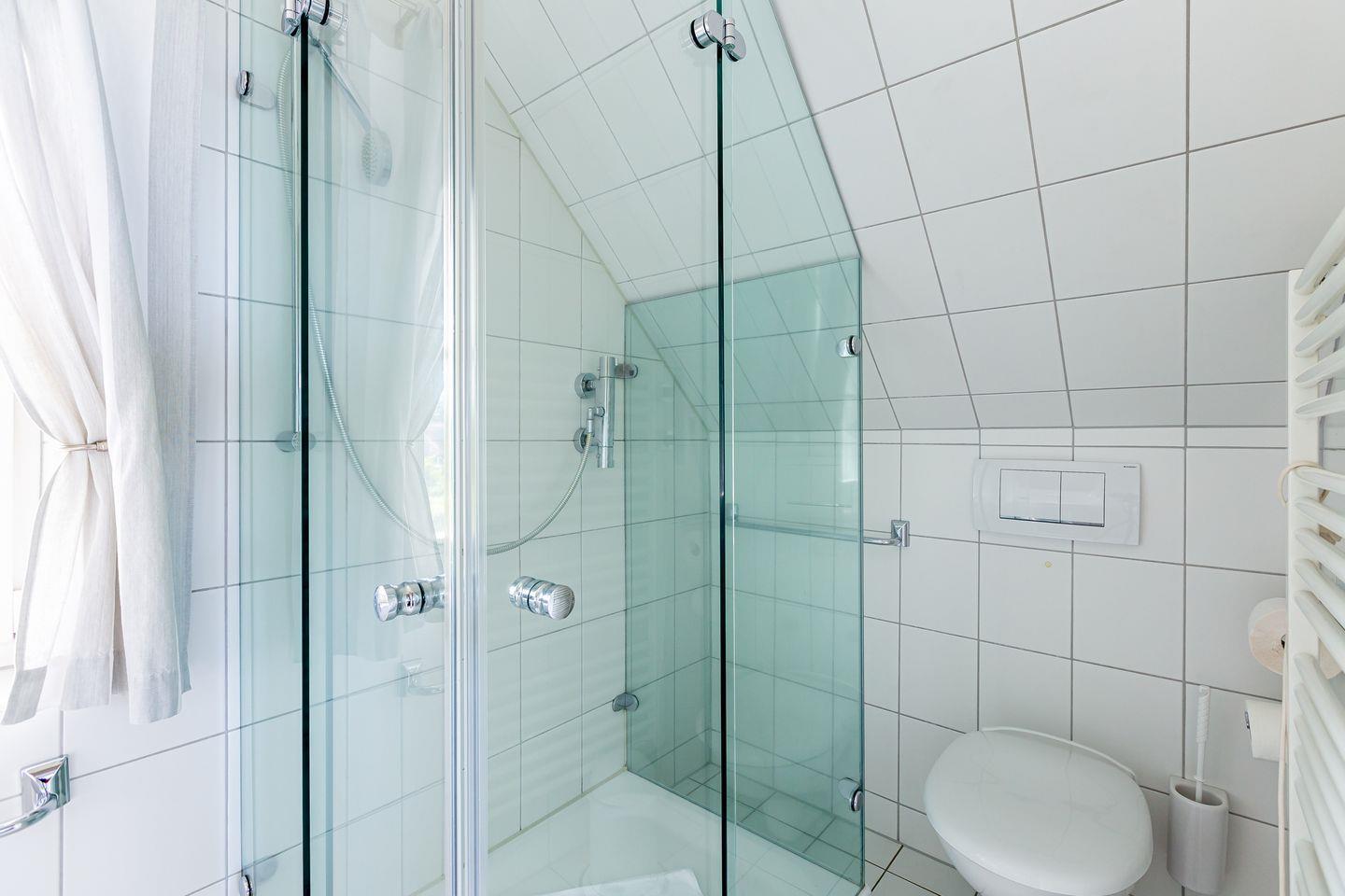 Das Ein-Raum-Appartement im Dachgeschoss verfügt über einen Wohn-und Schlafbereich mit gemütlicher Sitzecke, einem Doppelbett (180 cm) und einer kleine Küchenzeile mit Esstisch. Das Tageslichtbad mit Dusche/WC und Handtuchtrockner befindet sich separat. Du genießt aus der Wohnung einen traumhaften Meerblick.