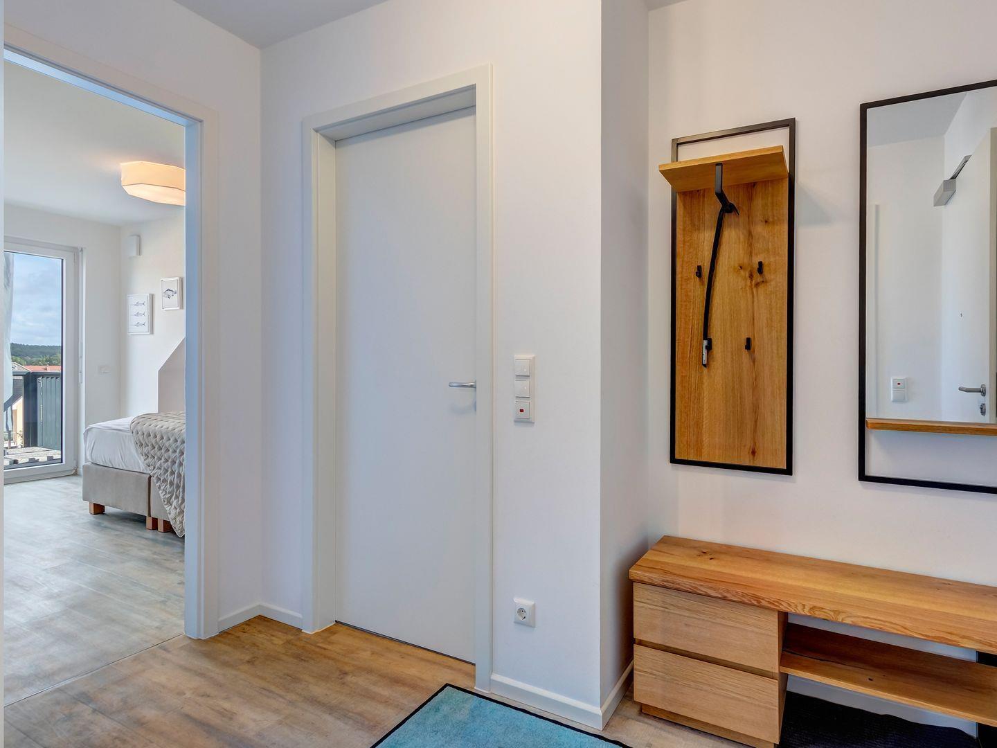 Die Ferienwohnung erstreckt sich über 57 Quadratmeter und bietet Platz für bis zu vier Gäste. Das Wohnzimmer ist ein Rückzugsort mit bequemer Schlafsofaecke und großen Fenstern.Die voll ausgestattete Küche ermöglicht Ihnen, kulinarische Köstlichkeiten zuzubereiten, die Sie dann auf dem sonnigen Balkon genießen können.Die Schlafzimmer sind ein Ort der Ruhe und Entspannung. Das komfortable Boxspringbett verspricht erholsame Nächte. Das Badezimmer ist modern gestaltet, mit einer geräumigen Dusche.