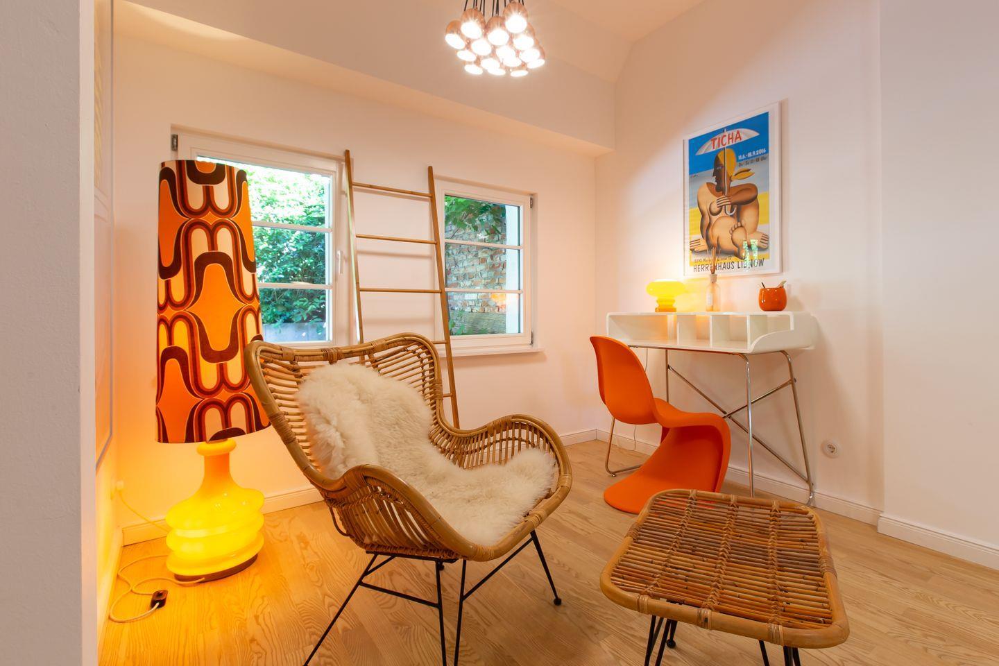 Es ist dieser unerwartete Kontrast zwischen traditioneller Fischlandarchitektur und moderner Inneneinrichtung, die den Aufenthalt in dieser hochwertig sanierten Doppelhaushälfte zu einem ganz besonderen Urlaubserlebnis macht. Freigelegte Holzbalken, schiefe Wände und massive Holztüren sind Zeitzeugen einer uralten Baukultur und zugleich liebevolle Dekoration der stilvollen und eleganten Inneneinrichtung. Die 115 Quadratmeter Wohnfläche verteilen sich auf zwei Etagen. Beim Betreten des Flurs sieht man bereits, dass das Ambiente durch warme Naturmaterialien, helle Farben und eine offene und großzügige Raumaufteilung geprägt ist. Ein komfortables Badezimmer mit Dusche, eine topmoderne Küche mit Esstisch sowie der boheme und künstlerisch gestaltete Wohnbereich befinden sich im Erdgeschoss. Über eine Holztreppe gelangt man in ein weiteres Badezimmer mit Badewanne sowie die zwei Schlafzimmer des Hauses. Die offen gelegten Holzbalken sowie Einbauten wirken wie Designobjekte und bieten ein Höchstmaß an Erholung.