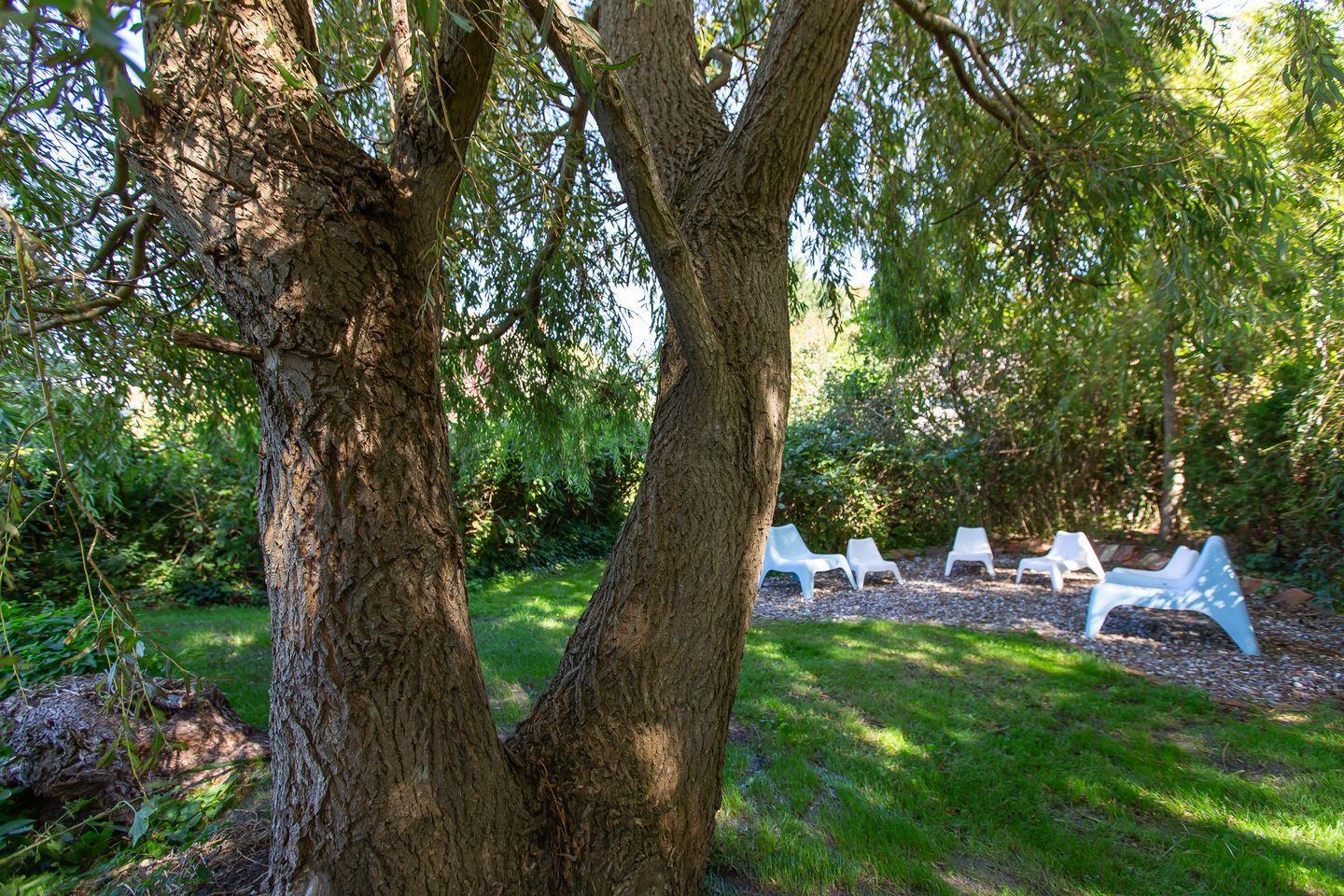Der Außenbereich begeistert durch seine großzügige Terrasse mit hochwertiger Bestuhlung und weitläufigen Naturgarten. Hier finden sich gleich mehrere lauschige Plätze zum Ausspannen und Durchatmen. Alte Bäume, wilde Sträucher und bunte Blumenbeete finden sich überall auf dem abgeschlossenen Grundstück und sorgen für Urlaubsidylle im eigenen Garten. Eine Außendusche, eine Schaukel, ein Elektrogrill und Sonnenliegen runden das Outdoor-Vergnügen perfekt ab. Des Weiteren gehört zum Ferienhaus ein PKW-Stellplatz auf dem Grundstück.