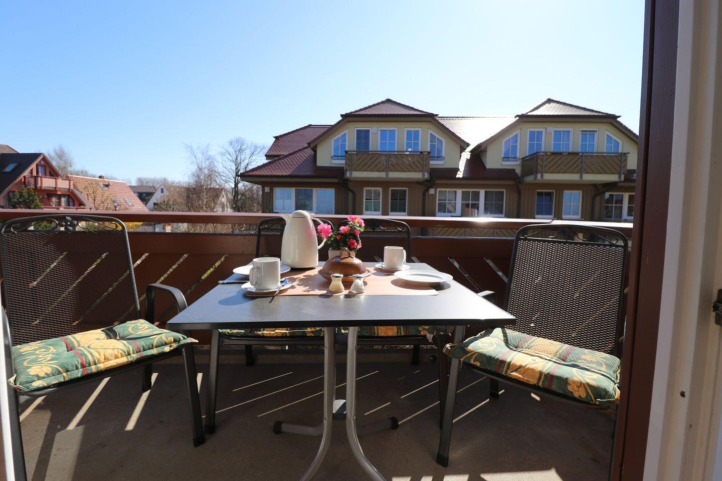 Ein geräumiges Appartement im Obergeschoss für maximal 4 Personen mit einem Balkon nach Nord-Ost und Blick auf die Ostsee. Das Appartement verfügt über ein Wohnzimmer mit integrierter Küche, zwei Schlafzimmer mit Doppelbetten sowie ein Badezimmer mit Dusche und WC. Zusätzlich steht Ihnen eine Waschmaschine und ein Trockner zur Verfügung, um den Aufenthalt noch komfortabler zu gestalten. Haustie-re und Rauchen sind nicht gestattet, jedoch gibt es WLAN für einen bequemen Internetzugang während des Aufenthalts. Diesem Appartement ist der Tiefgaragenstellplatz Nr. 08 zugeordnet.