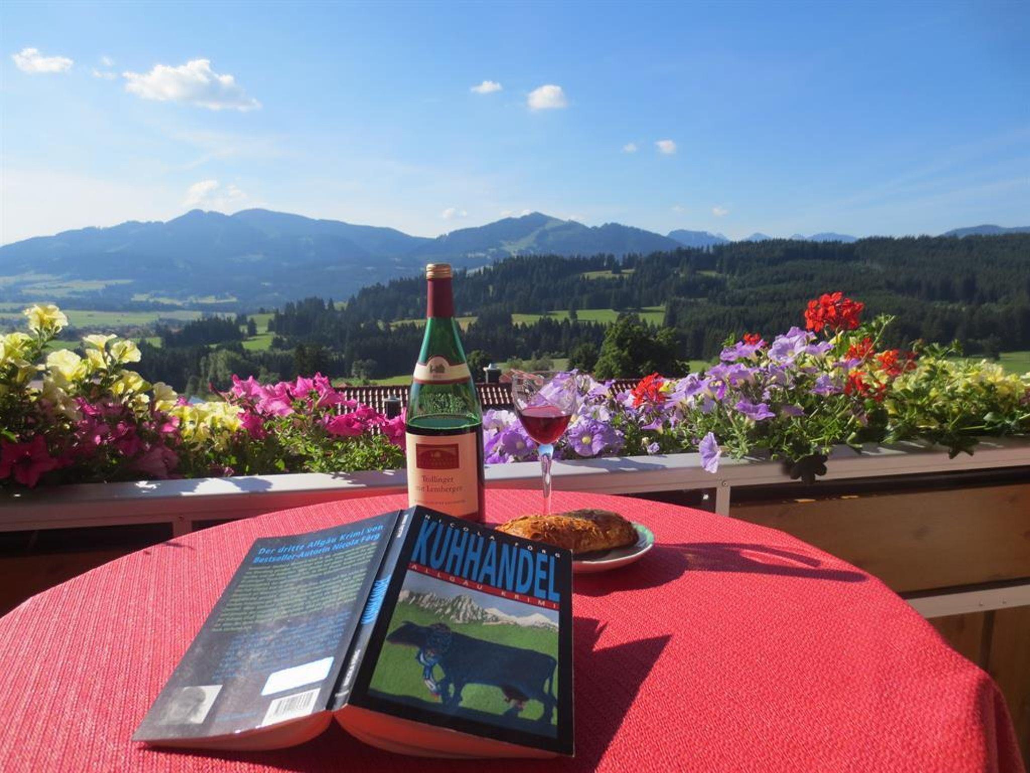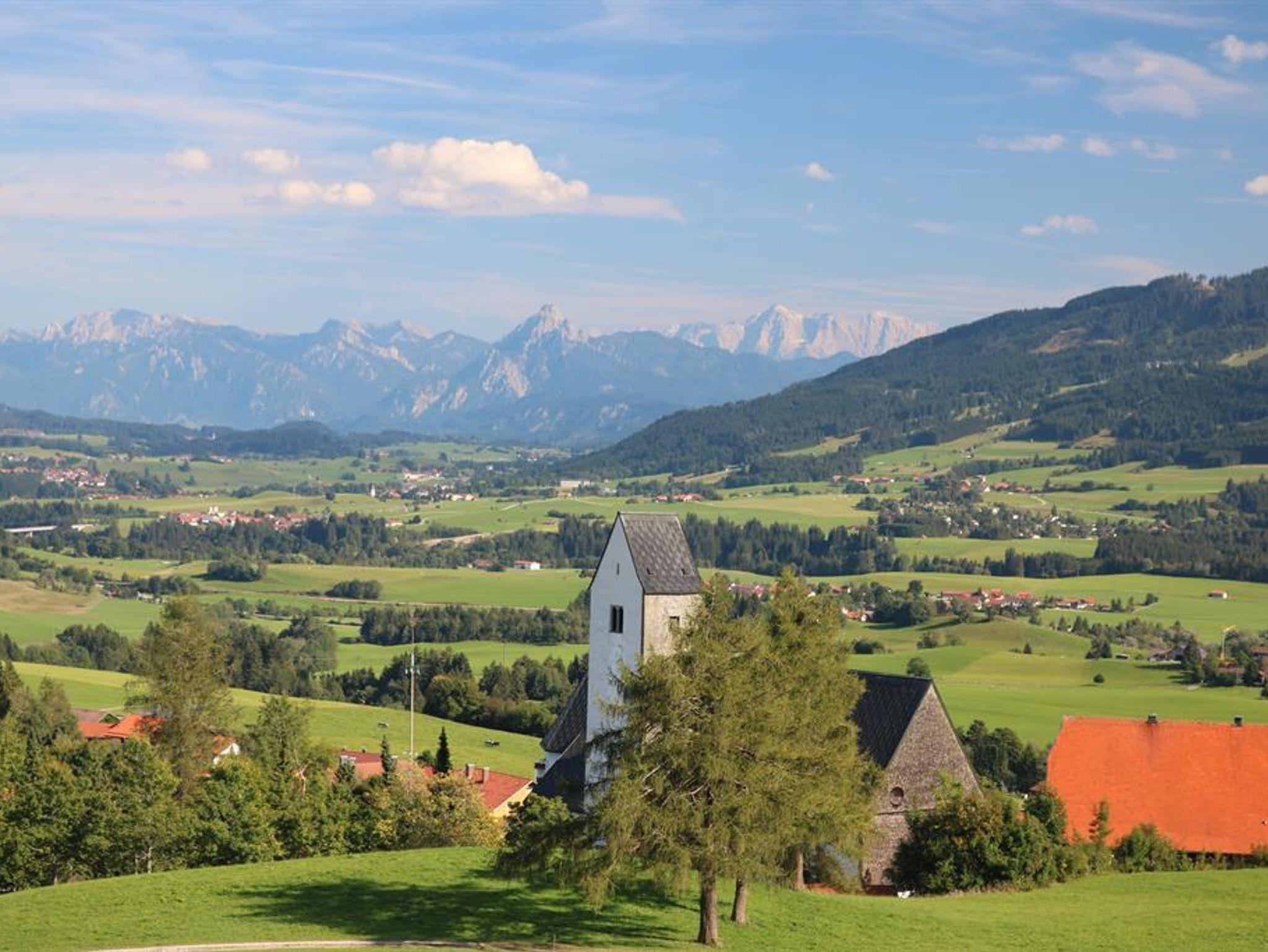 Freie Aussicht auf die Zugspitze und Allgäuer Bergwelt.
