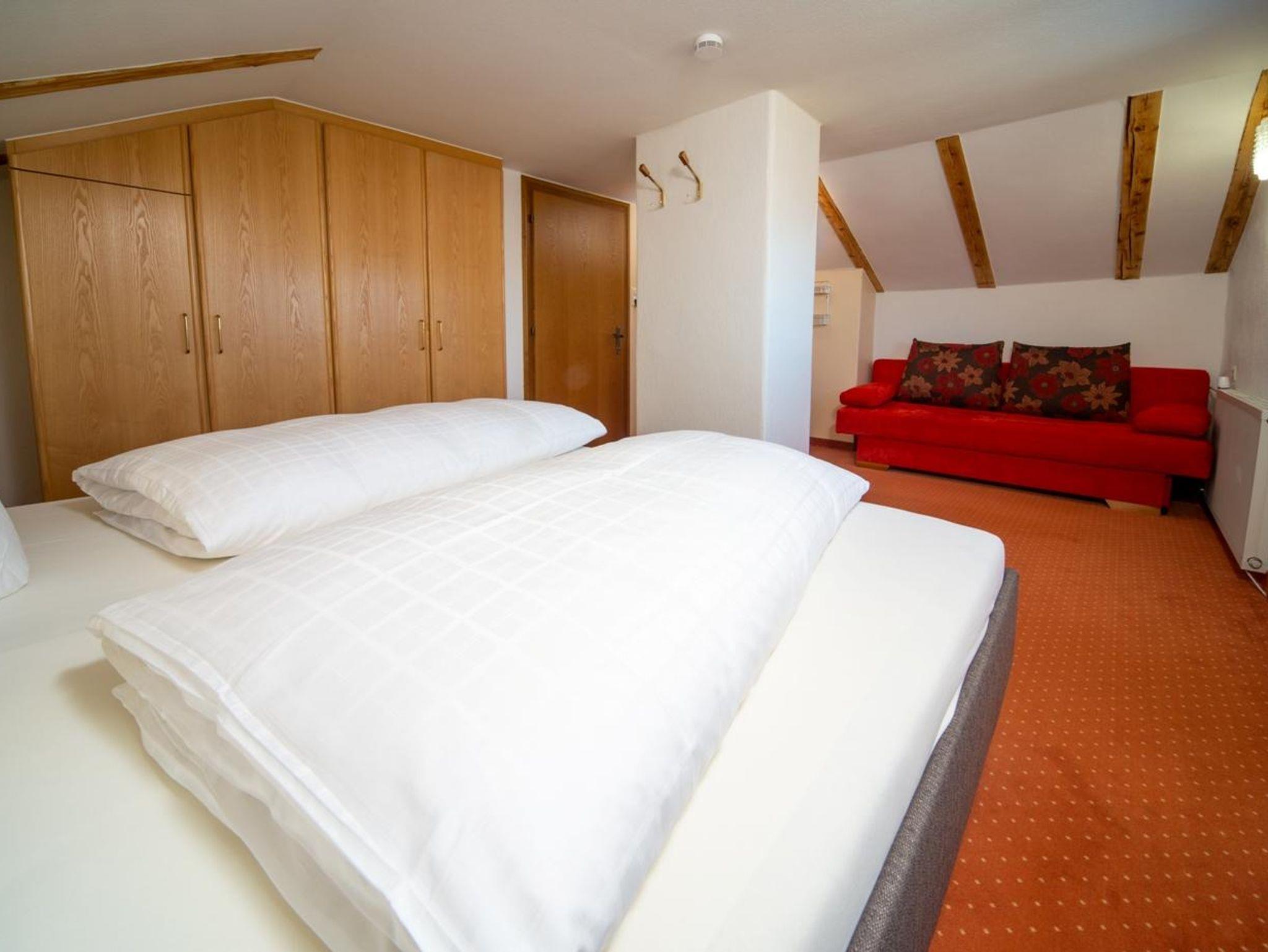 Unsere gemütlich eingerichtete Wohnung Zugspitzblick hat eine komplette Küche mit Wasserkocher, Kaffeemaschine, Toaster, Küchenradio, Spülmaschine, Ceran-Kochfeld, Backofen mit Heißluft und Grill, Microwelle. Im Wohnzimmer gibt es einen 40 LCD Fernseher, Video-DVD Player und tragbarem Radio-CD/DVD Player. Das Badezimmer hat eine Dusche, Waschbecken, Kosmetikspiegel, Haartrockner u.WC. Separates WC. Im Wohnbereich gibt es eine große Couchgarnitur mit Schlaffunktion. 2 getrennte Schlafzimme