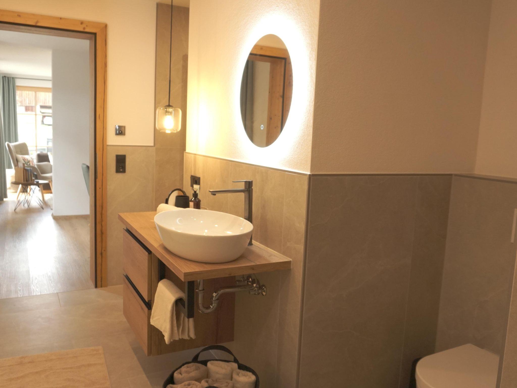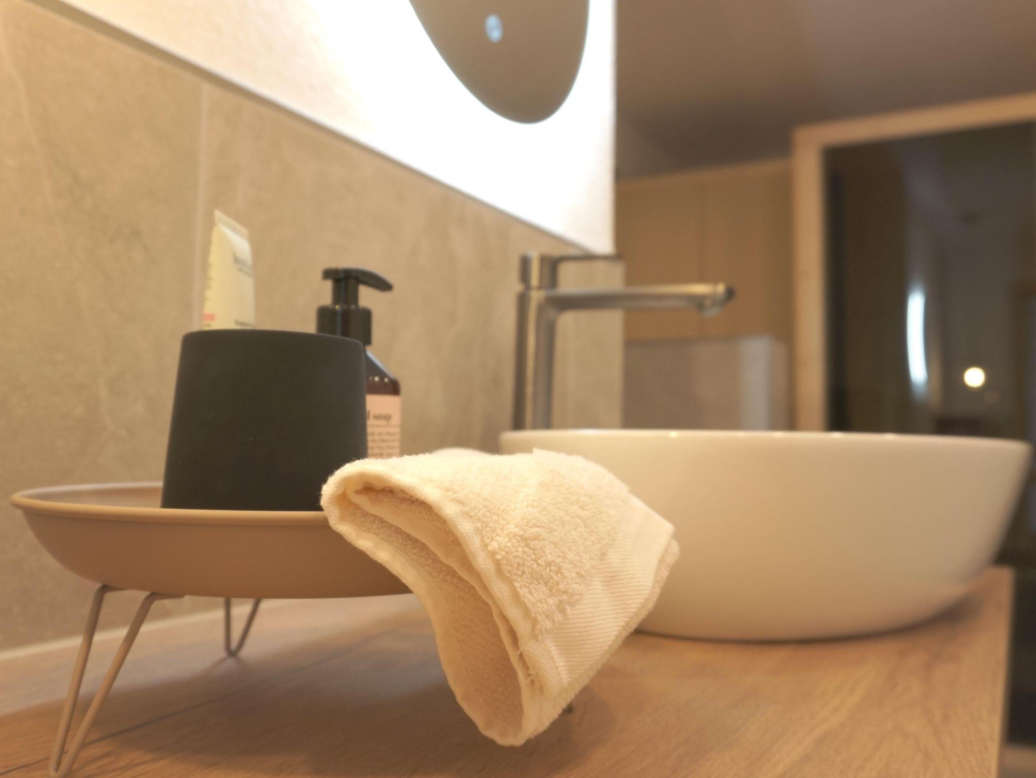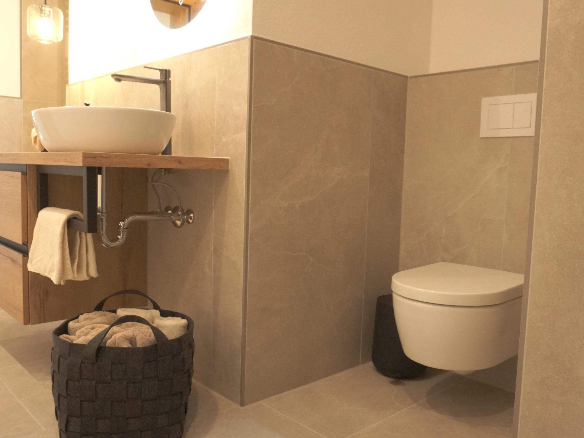 Ein großzügiges Bad mit Dusche, Waschmaschine und hochwertiger Infrarotkabine (Physiotherm), inclusive Shampoo, Duschgel und Conditioner lädt sie am Abend für entspannte Momente ein.