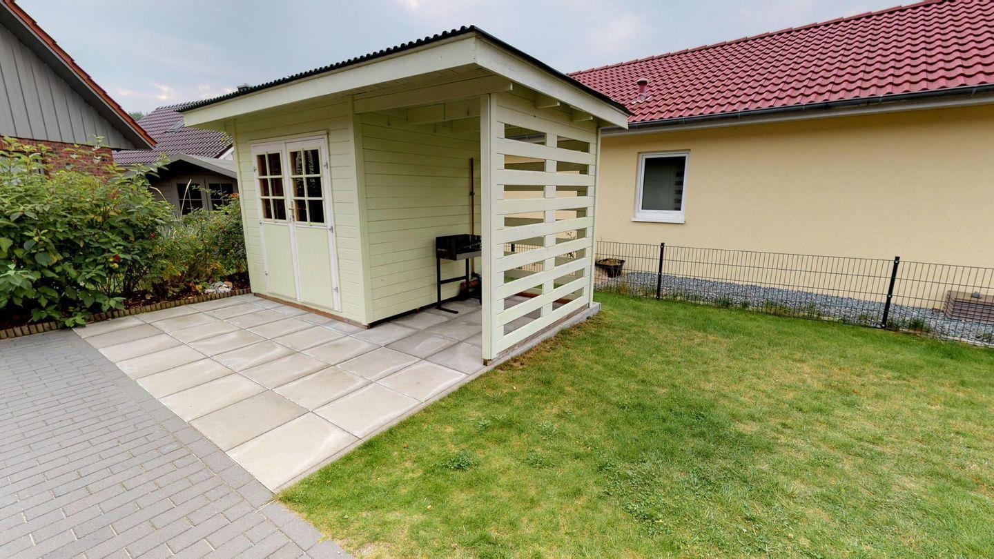 Auf den beiden Terrassen können Sie mit den Gartenmöbeln, dem Grill und dem Strandkorb die Seele baumeln lassen. Im Gartenhaus ist Platz für mitgebrachte Fahrräder.