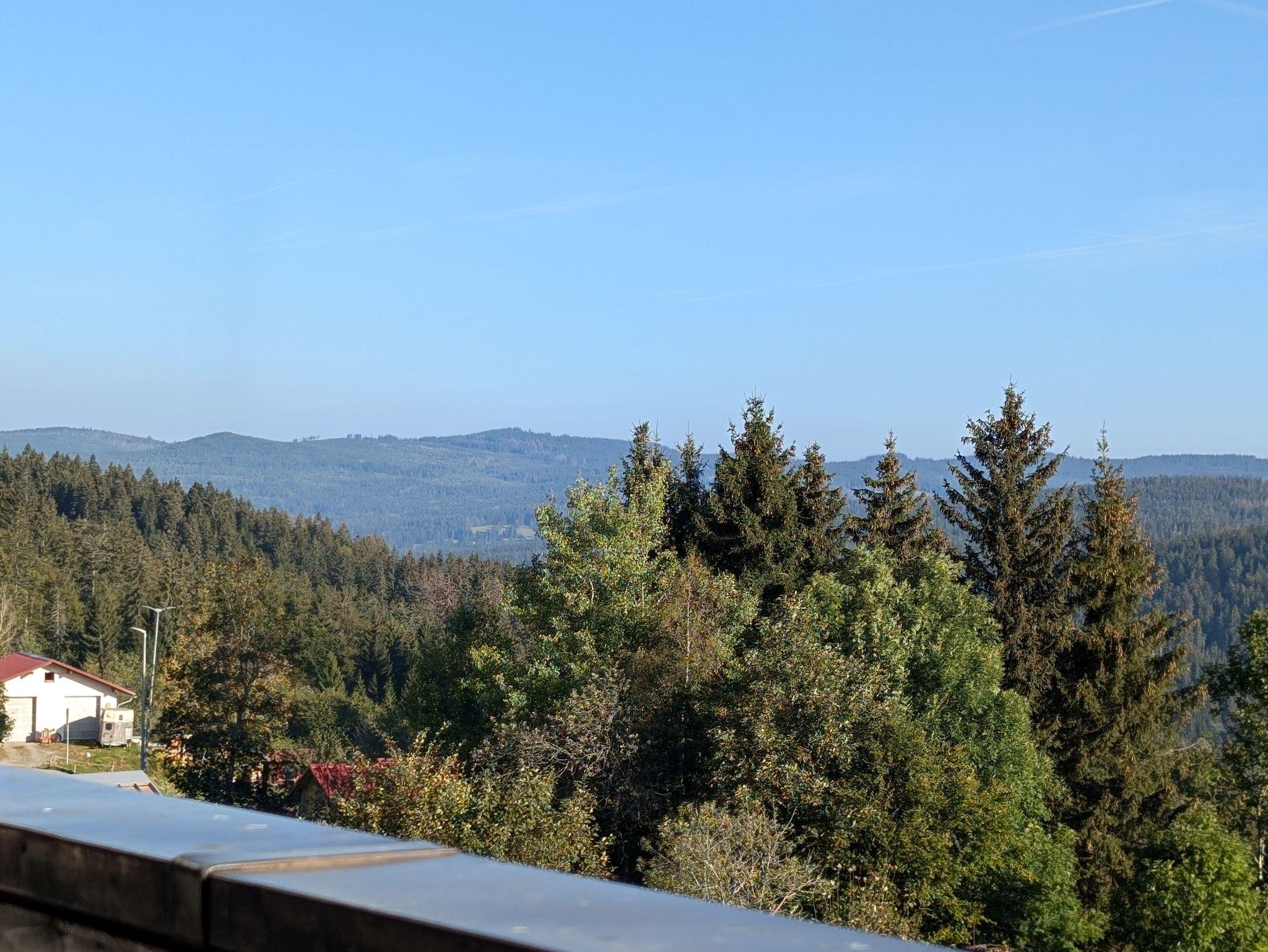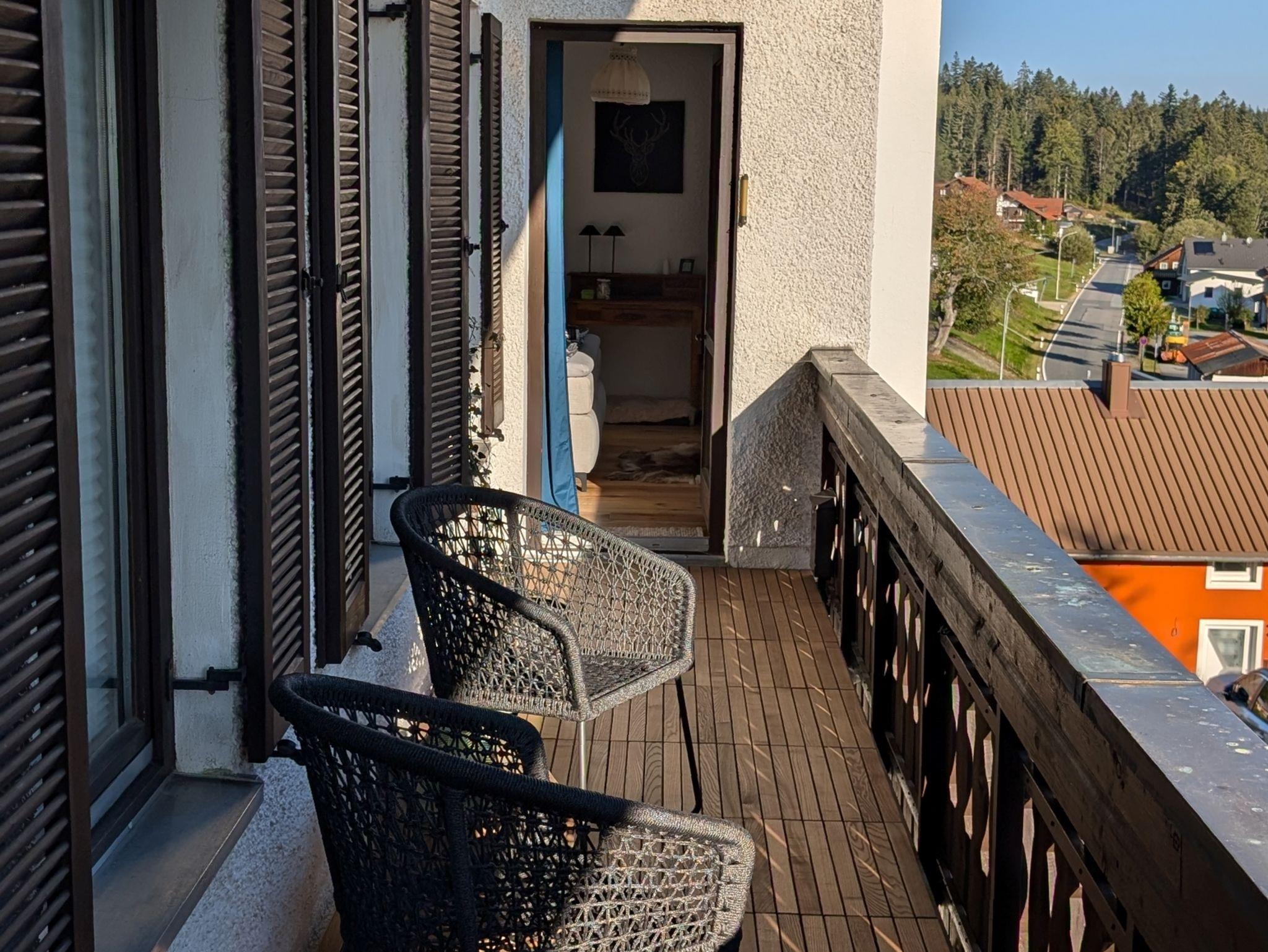 Der Balkon wurde mit einem natürlichen Belag aus Thermoesche versehen, der im Sommer auch zum Barfußgehen einlädt. Zwei Ropestühle bieten die Möglichkeit den Blick in die unberührte Ferne der Tschechei schweifen zu lassen.