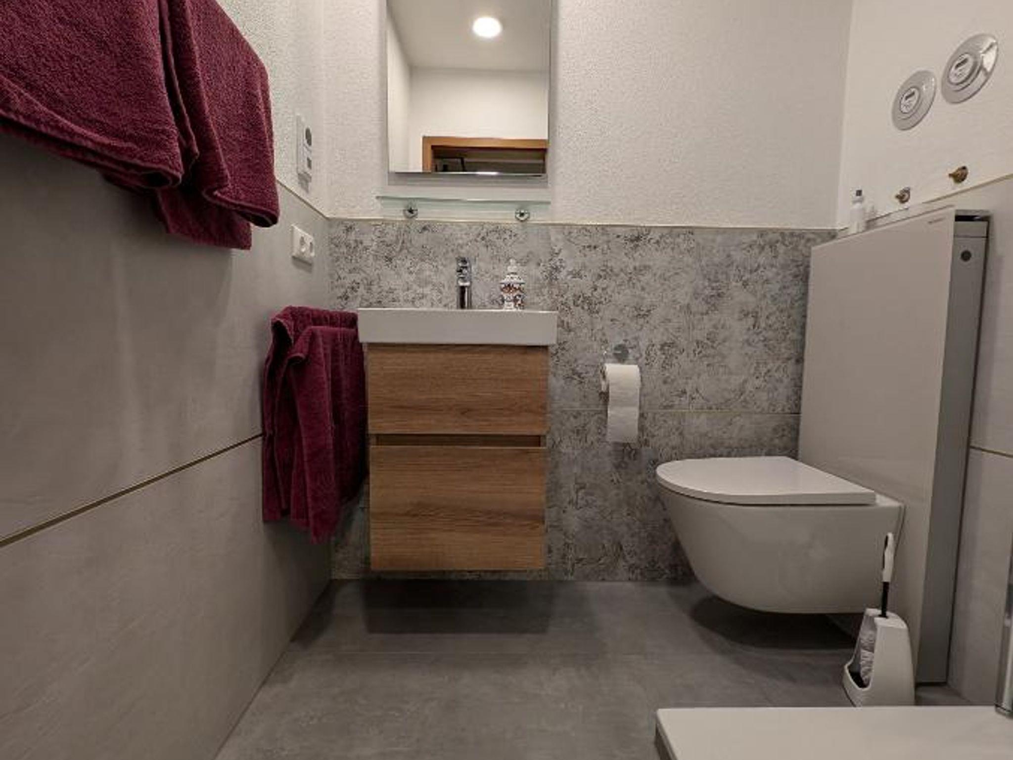 Im komplett renovierten Badezimmer befindet sich eine Dusche mit Raindancer, WC, Waschbecken, Einbauradio und Fön.