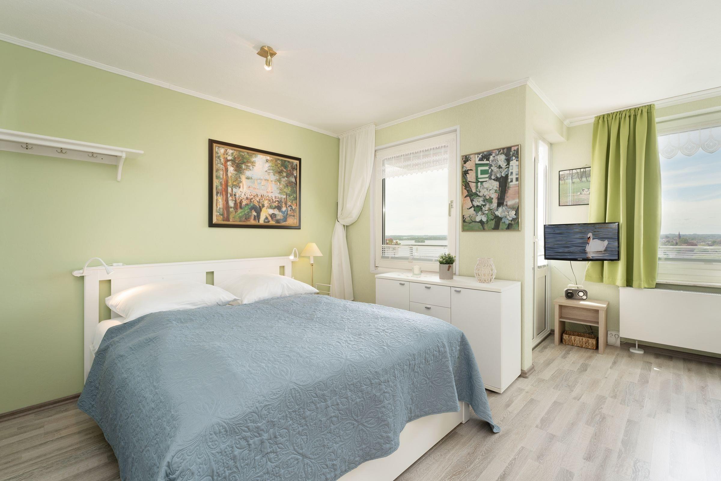 In der besten Lage von Plön: zauberhafte, ca. 34 m² große 1-Zimmer-Ferienwohnung im 13. Stock mit Balkon und Weitblick für bis zu 2 Personen.