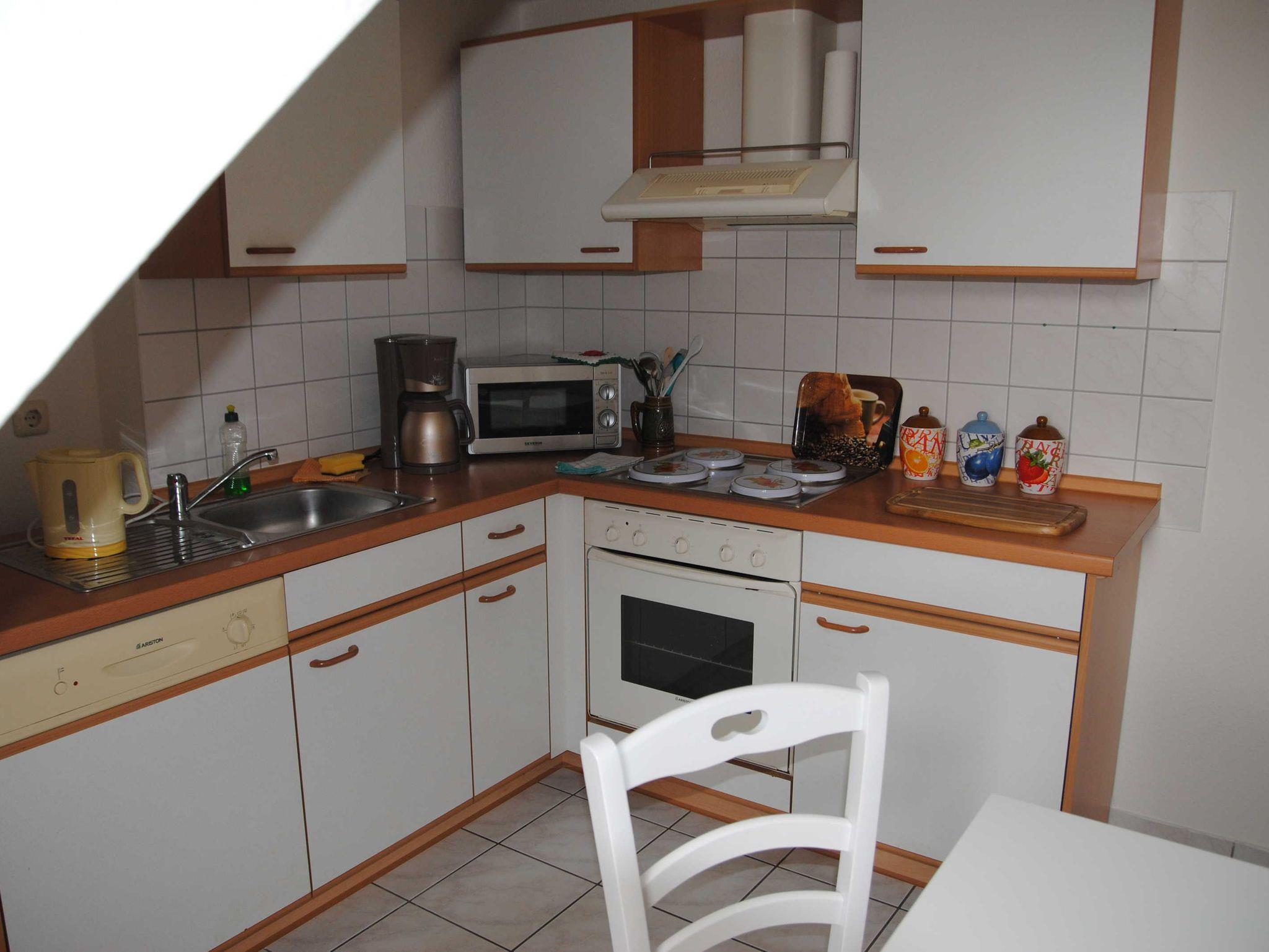 Die Wohnung liegt im Dachgeschoss-2. Etage und besteht aus einem Wohn-/Essbereich, separatem Schlafzimmer mit Doppelbett, voll eingerichtete Küche und Bad mit Badewanne. Eine Aufbettung für eine Person ist möglich.
