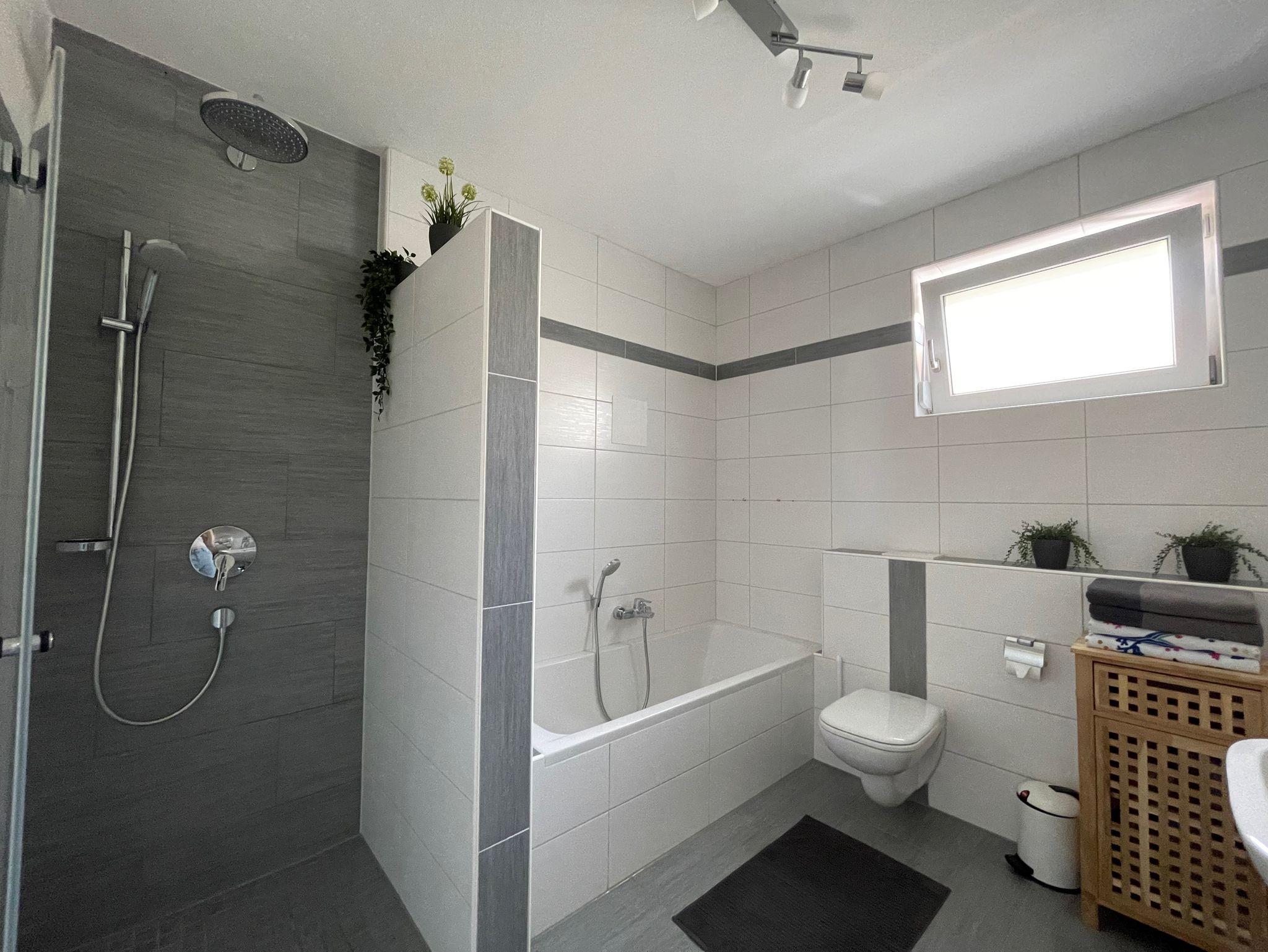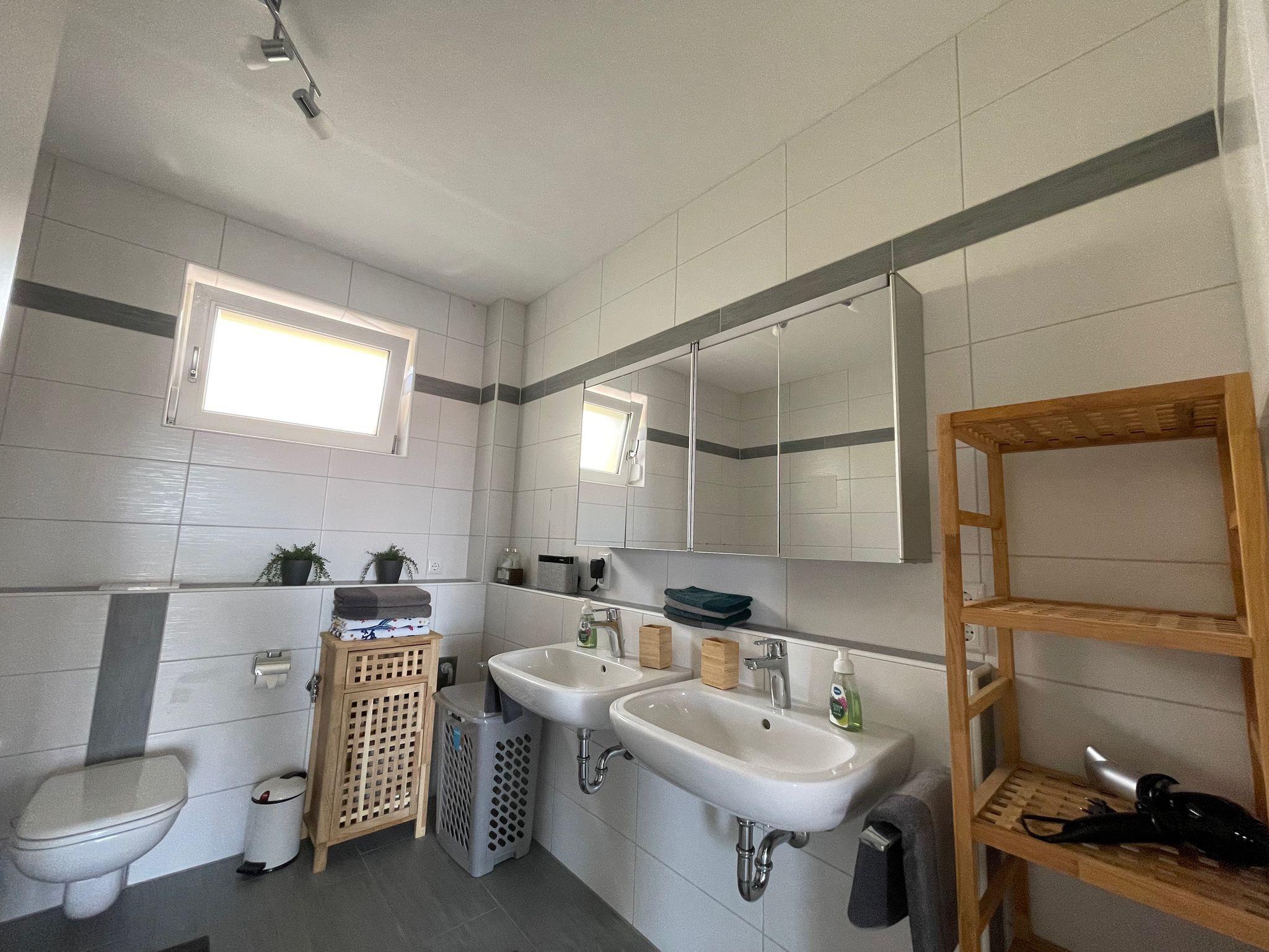 Das Haus wurde XXXXXX neu gebaut. Die Wohnung hat eine Größe von ca. 95 m². Sie ist barrierefrei und bequem mit einem Aufzug zu erreichen. Sie verfügt über zwei Schlafzimmer und einen großen Wohn-, Ess-, Küchenbereich. Das Bad verfügt über eine Dusche und Badewanne, Doppelwaschbecken sowie WC. In allen Räumen, ausser Bad, ist ein handgehobelter, geölter Eichenparkett verlegt, der für ein angenehmes Raumklima sorgt. In den Sommermonaten können Sie Ihren ersten morgendlichen Kaffee oder den letzten abendlichen Wein gemütlich auf dem großen Balkon, mit Blick auf den Brombachsee oder auf der großen Terrasse mit Blick ins Grüne genießen.