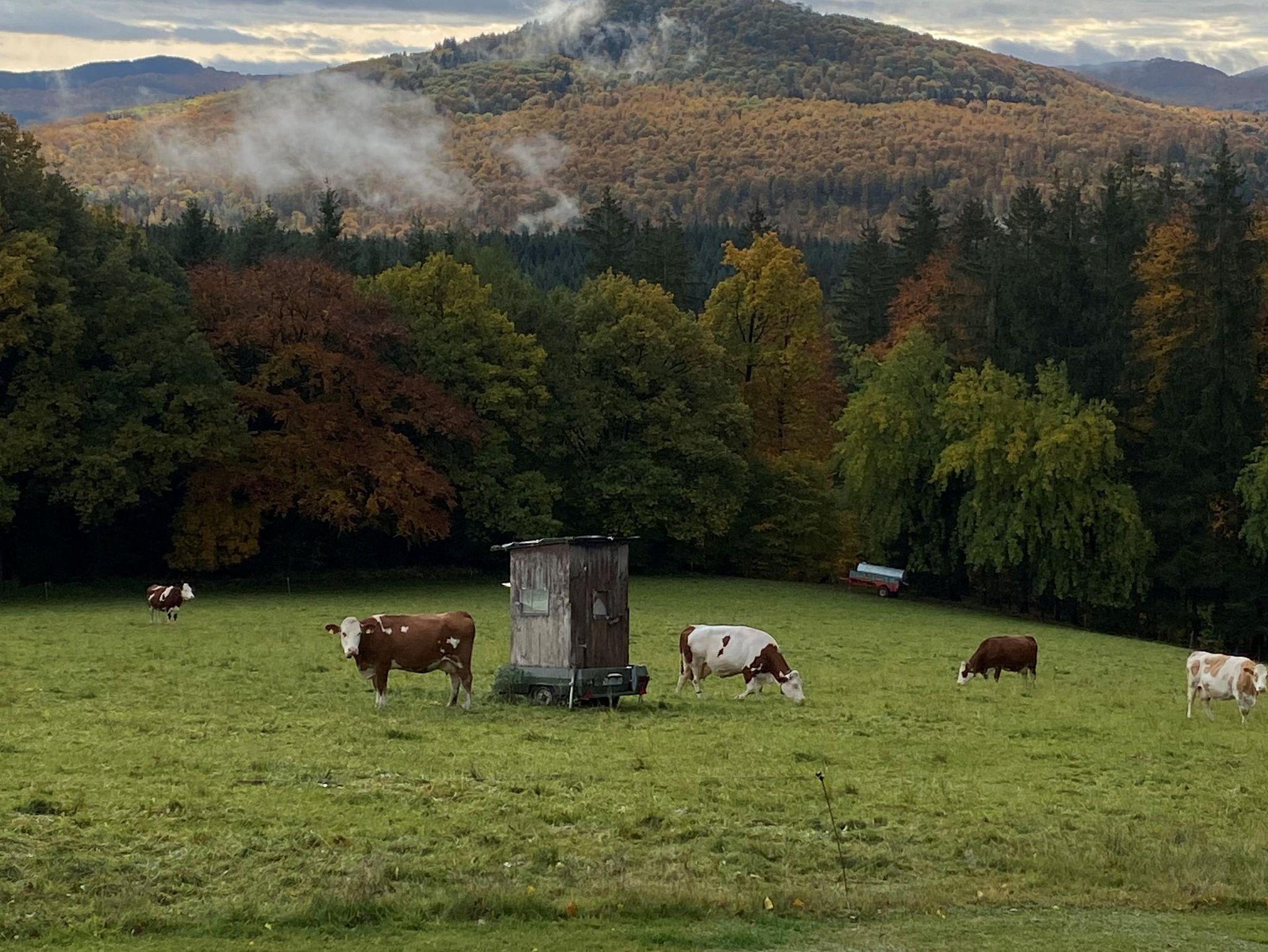 Vom restlichen Garten getrennt, liegt die Panoramasauna, mit Duschen, Ruhehütte und der dazu gehörigen Liegewiese. Diese steht ab der Wintersaison 2025/26 zur Verfügung. Aktuell können unsere Gäste unsere Sauna ca.200m von der Unterkunft entfernt nutzen.