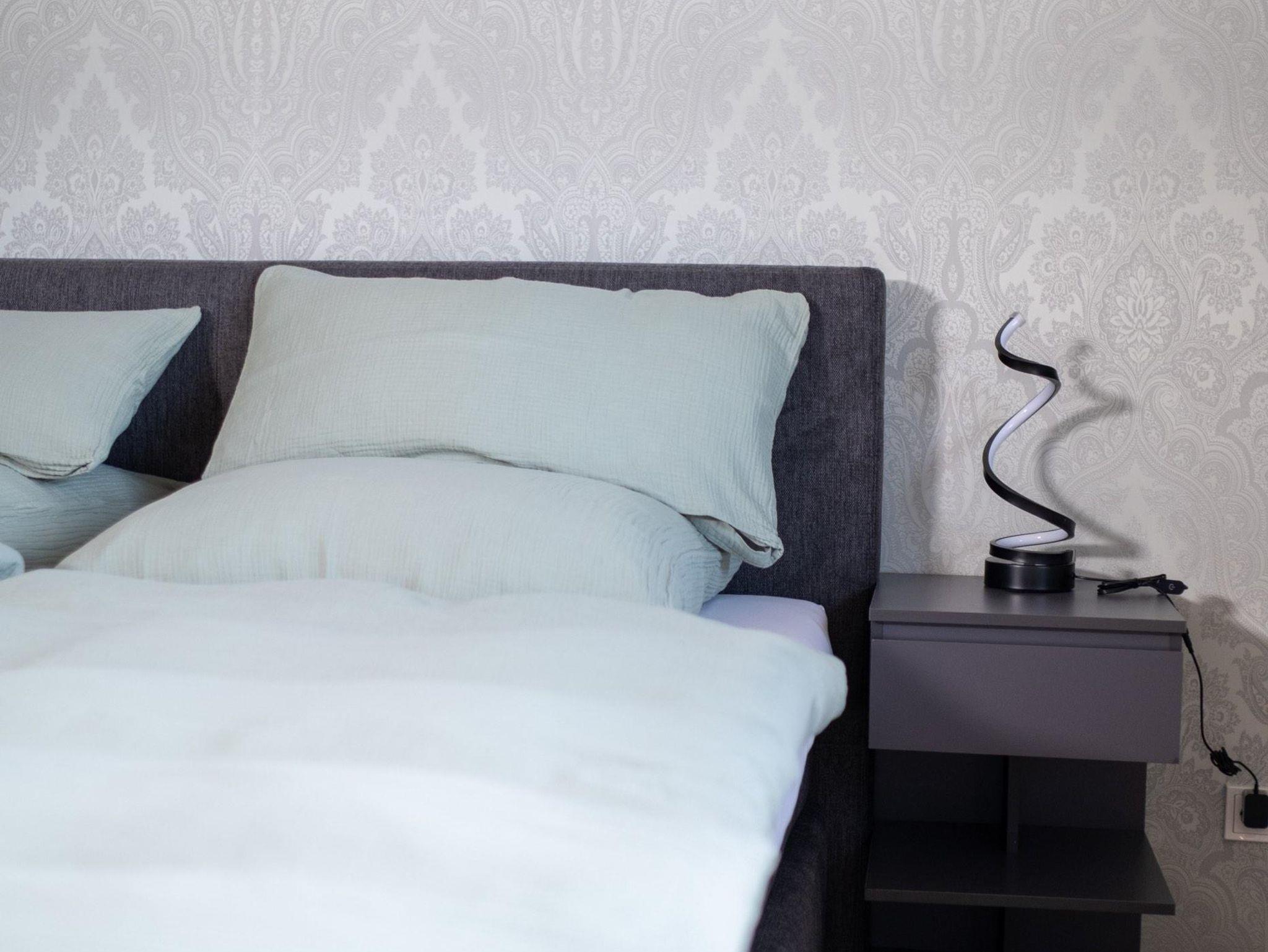 Die Wohnung verfügt über zwei gemütliche Schlafzimmer (1,80 m Doppelbett und 1,40 m Bett), ein Schlafsofa sowie ein modernes Bad mit Dusche und Badewanne. Die helle Wohnküche ist komplett ausgestattet mit Spülmaschine, Backofen, Kaffeemaschine, Toaster, Wasserkocher, Pfannen, Töpfe, Geschirr, Besteck und Küchenhandtüchern.