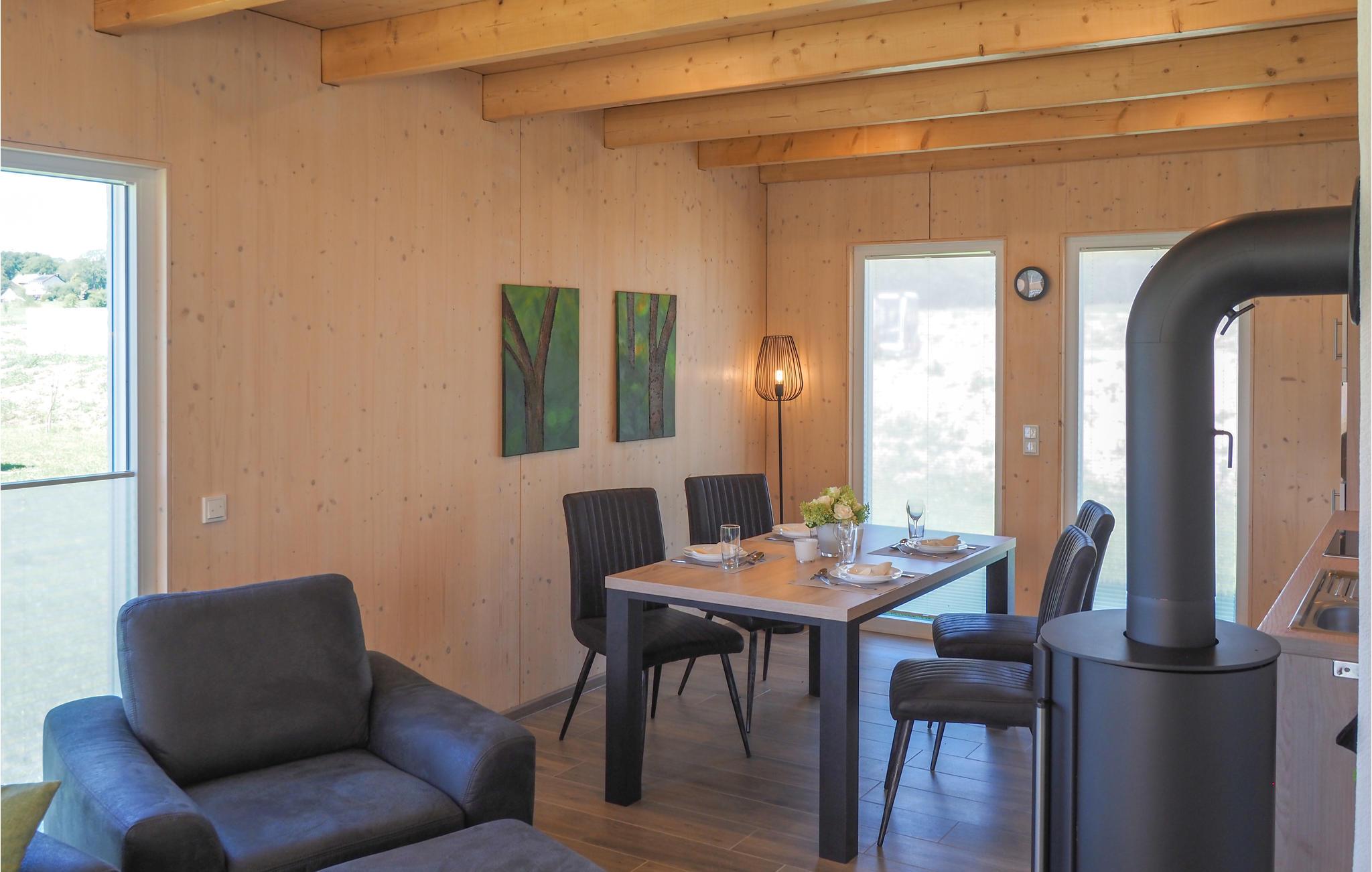 Bis zu 4 Personen finden in dem Haus mit 2 Schlafzimmern Platz. Durch bodentiefe Fenster haben Sie einen herrlichen Blick ins Freie. Machen Sie es sich nach einem aktiven Tag in der Natur gemütlich am eigenen Kaminofen oder entspannen Sie in der Sauna.