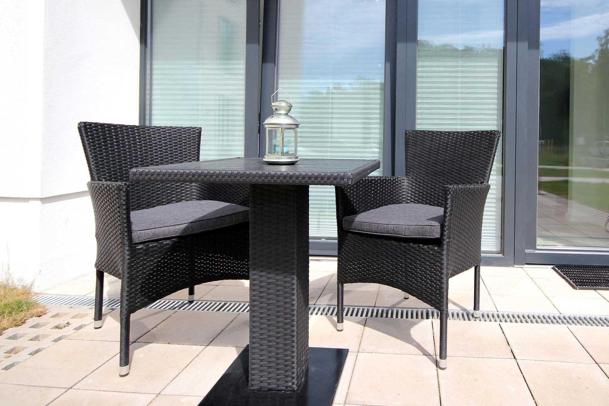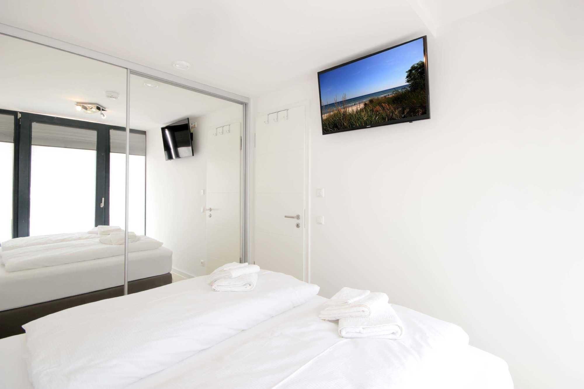 Ihre Nichtraucherwohnung verfügt über einen vorgelagerten Flur mit Garderobe. Angrenzend ist die schöne Wohnküche mit Essbereich (Tresen) sowie einem Wohnbereich mit gemütlicher Sitzgruppe inklusive Schlafcouch, Flachbild-TV [nbsp]mit Internetanschluss für [nbsp]Video Portale sowie ein Internet-Radio und direktem Zugang zur Terrasse zu finden. Im Küchenbereich befindet sich ein Backofen, Cerankochfeld, Mikrowelle, Geschirrspüler, Kühlschrank mit separaten Tiefkühlfach, eine Kaffeemaschine, Wasserkocher, Toaster sowie umfangreiches Kücheninventar. Im hell gefliesten Bad erwartet Sie eine Regendusche, Waschtisch, WC, Handtuchheiztrockner, Fön und ein beleuchteter Kosmetikspiegel. Der separate Schlafraum bietet Ihnen, wie auch die Eingangstür, den Zutritt zur weiteren Außenterrasse. Hier beschert Ihnen ein neues Boxspringbett himmlische Träume nach ereignisreichen Tag-Erlebnissen. Darüber hinaus befindet sich auch hier ein Smart-TV.