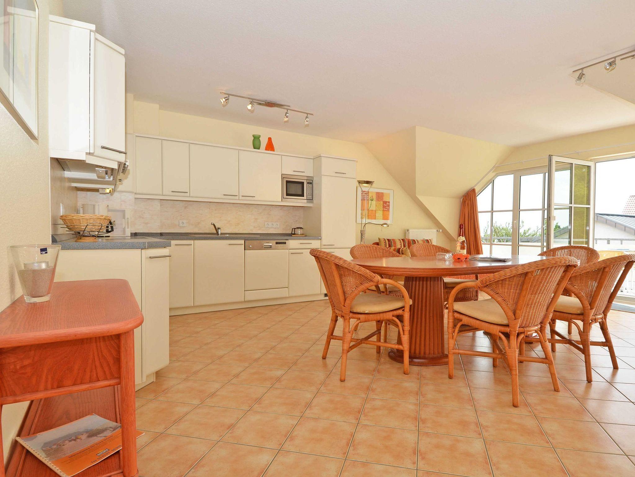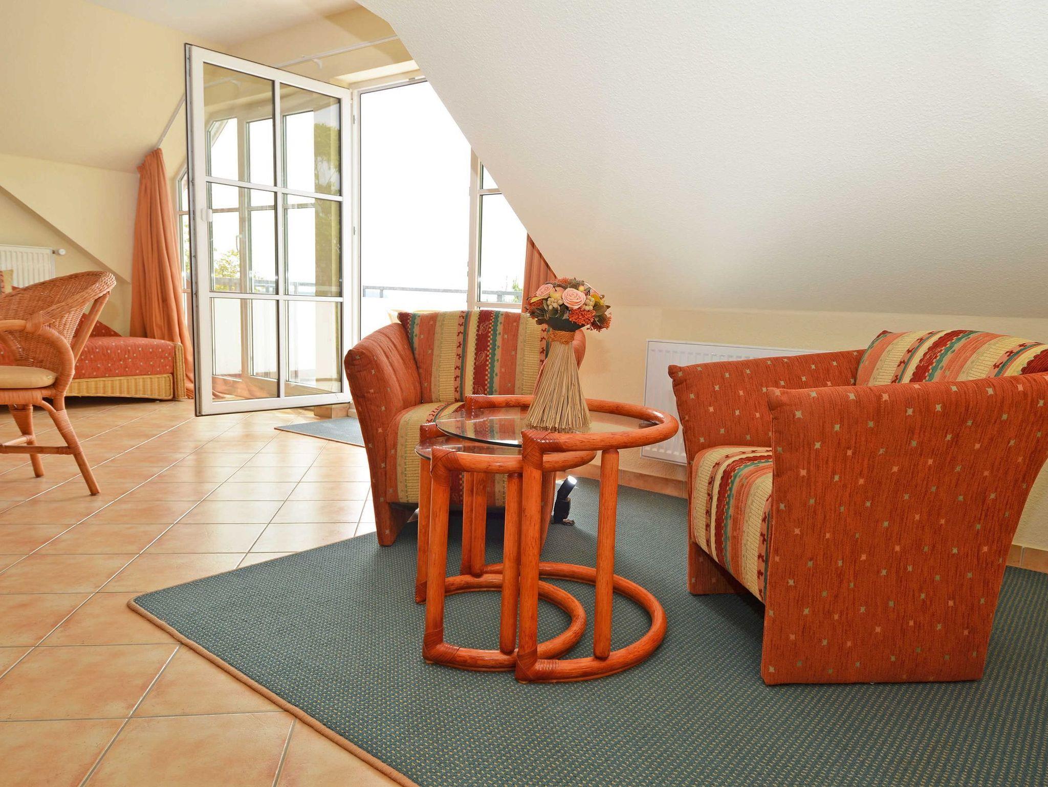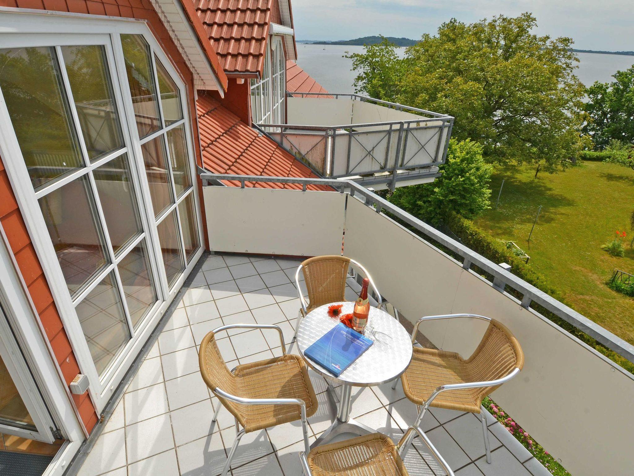 Das Appartement 23 ist ein elegant und komfortabel eingerichtetes 4-Raum-Appartement im Dachgeschoss mit einer Wohnfläche von ca. 100 m² und einem großzügigen, möblierten Balkon (ca. 10 m²) zur Westseite mit seitlichem Seeblick.