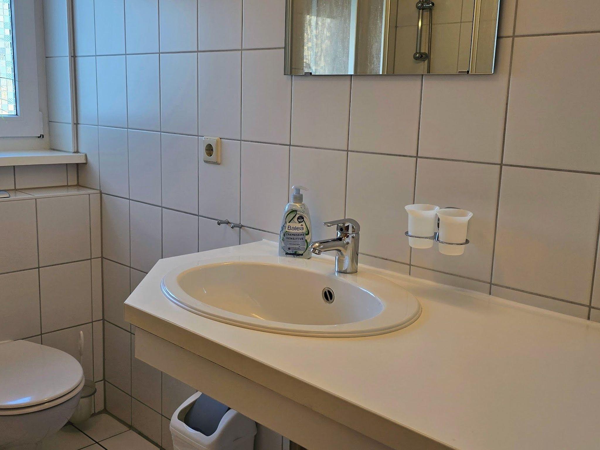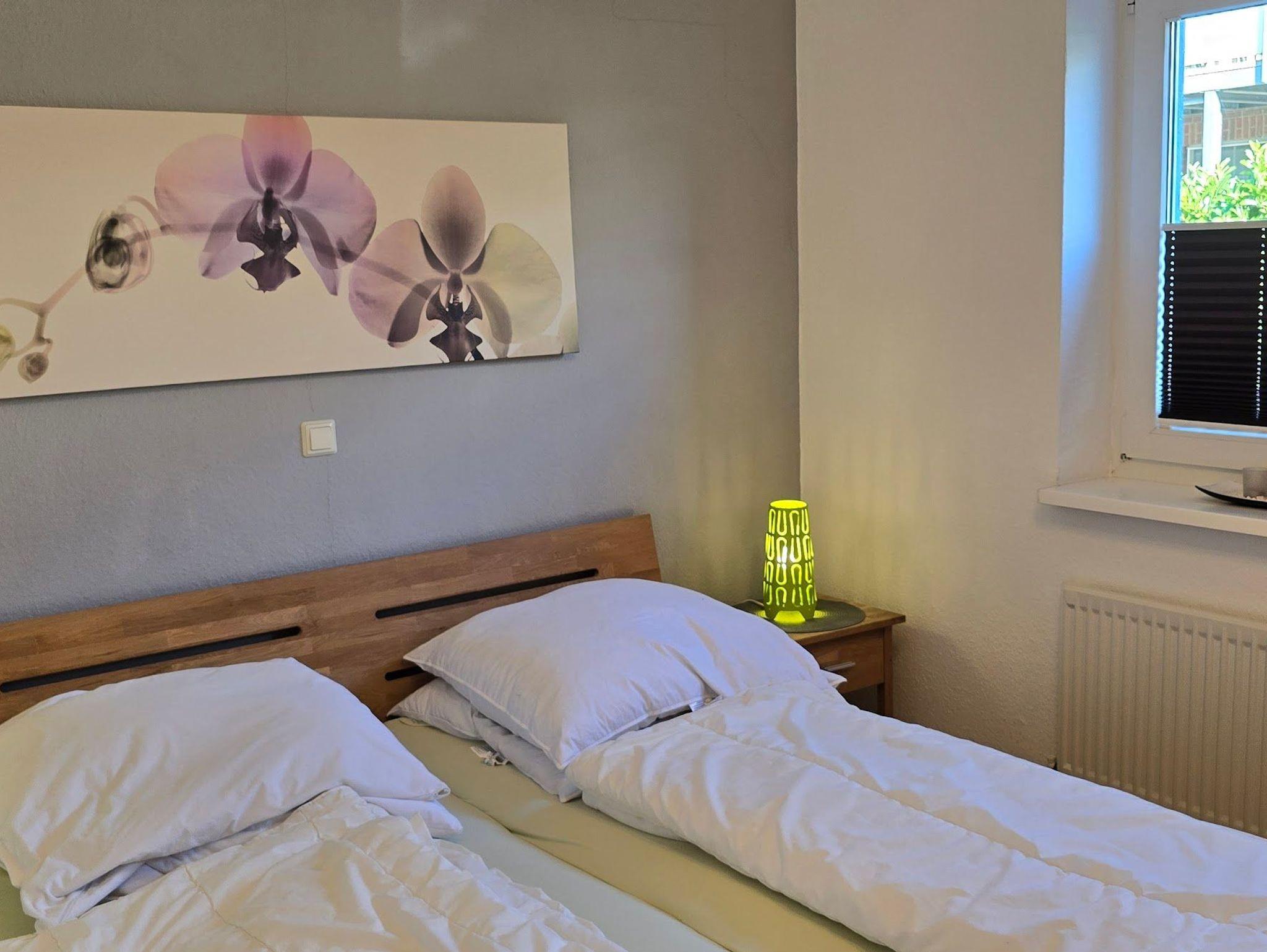 2 Raum Apartement mit Terrasse , 1,80m x 2 Doppelbett im Schlafzimmer und Schlafcouch im Wohnzimmer sowie einer gut ausgestatteten Küchenzeile mit Geschirrspüler und Backofen . Esstisch für 4 Personen. Kaffemaschine und Toaster sind vorhanden. Erstausstattung Bettwäsche und Handtücher vorhanden. Kinderbett und Hochstuhl für die Kleinsten bitte vorbestellen . Für Ihr Auto ist ein Garagenplatz vorgesehen. Max. Höhe 1,50m.