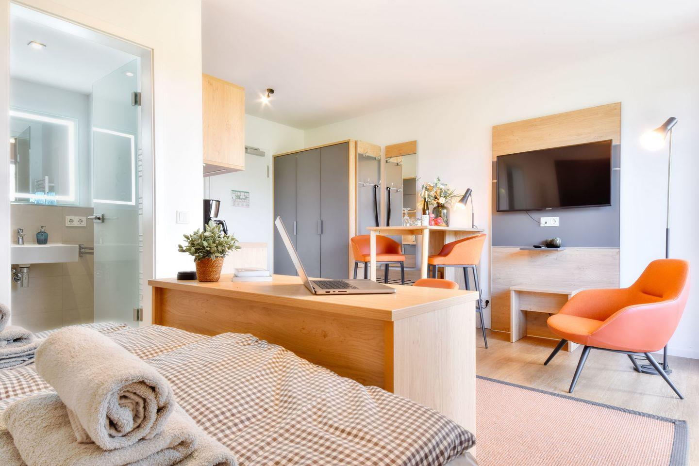 Küche: Die voll ausgestattete Küche bietet alles, was Sie zur Selbstversorgung benötigen. Von modernen Küchengeräten bis hin zu ausreichend Geschirr und Besteck ist alles vorhanden, um Ihre Lieblingsgerichte zuzubereiten.