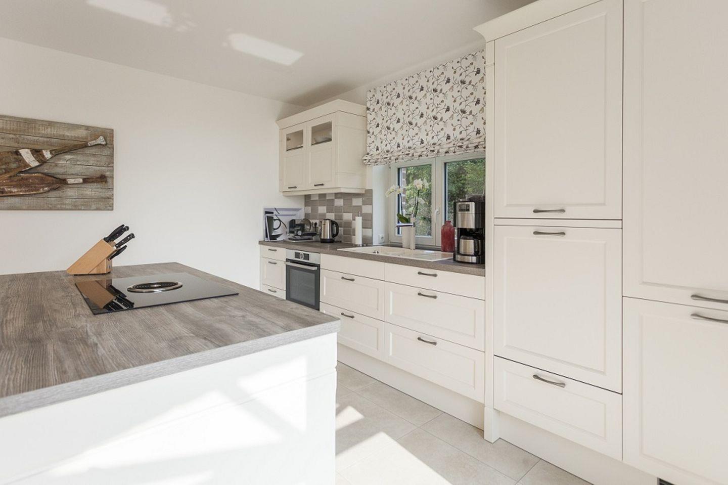 KÜCHE // offene Küche, Kücheninsel mit Induktionsfeld und Sitztresen, Spülmaschine, Kühlschrank mit Gefrierfach, Backofen, Toaster, Wasserkocher, Kaffeemaschine, reichlich Besteck, Geschirr und Küchenutensilien ++