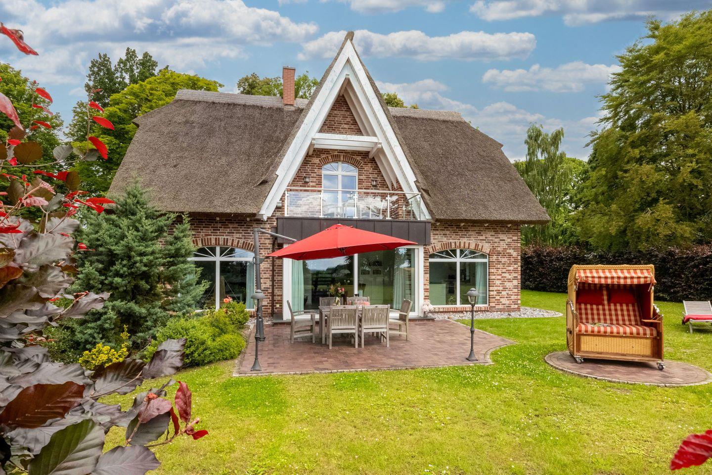 Zwei neu errichtete Reetdachhäuser mit großzügigem Wasserblick bilden die Boddenresidenz am Rand der fürstlichen Stadt Putbus auf der Insel Rügen. Jedes Haus steht auf einem etwa 1.200 qm großen Grundstück gegenüber dem historischen Landschaftspark und bietet auf 190 qm Wohnfläche Platz für bis zu sechs Gäste. Im traditionellen Landhausstil gestaltet, vereinen die Häuser Behaglichkeit mit exklusivem Ambiente.