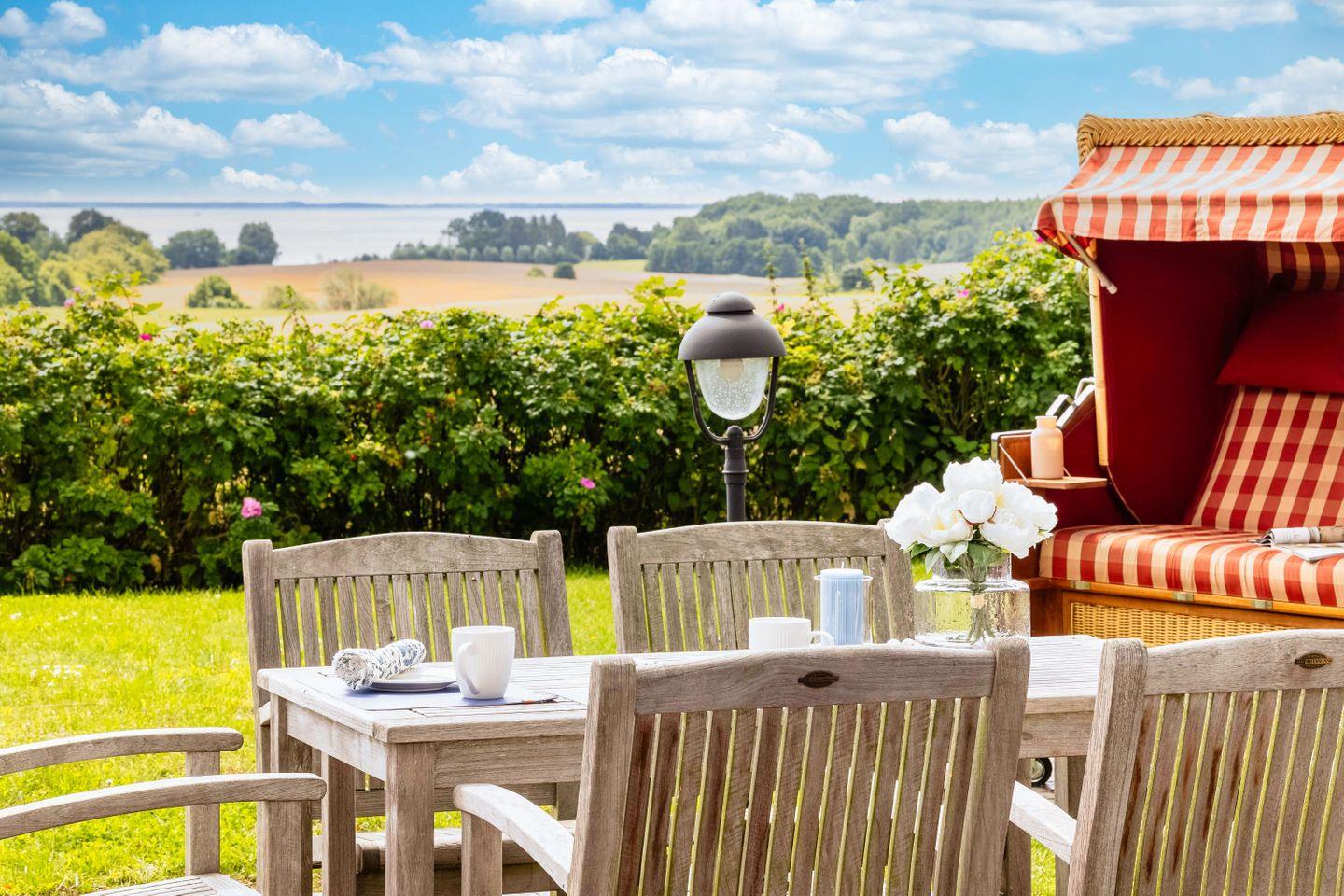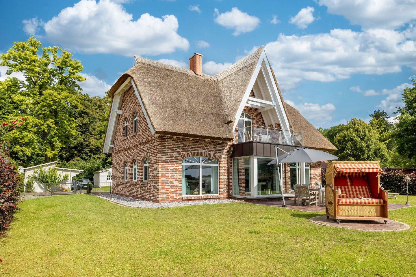 Zwei neu errichtete Reetdachhäuser mit großzügigem Wasserblick bilden die Boddenresidenz am Rand der fürstlichen Stadt Putbus auf der Insel Rügen. Jedes Haus steht auf einem etwa 1.200 qm großen Grundstück gegenüber dem historischen Landschaftspark und bietet auf 190 qm Wohnfläche Platz für bis zu sechs Gäste. Im traditionellen Landhausstil gestaltet, vereinen die Häuser Behaglichkeit mit exklusivem Ambiente.