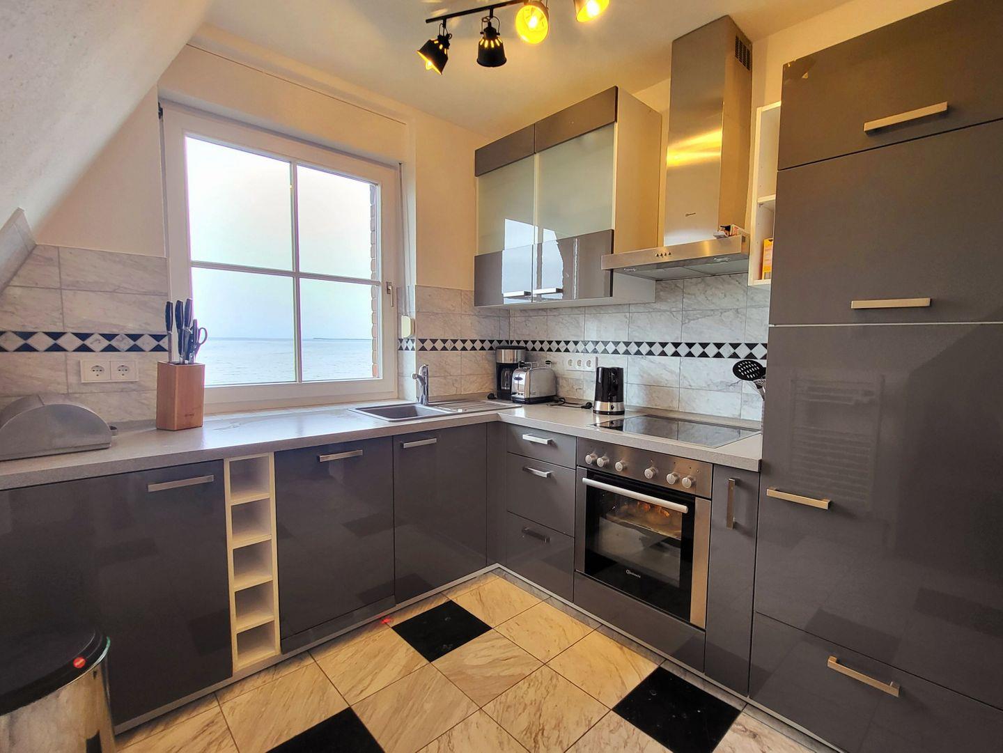 KÜCHE // offene Küchen, Ceranfeld, Spülmaschine, Kühlschrank mit Gefrierfach, Backofen, Toaster, Wasserkocher, Kaffeemaschine, Mikrowelle, reichlich Besteck, Geschirr und Küchenutensilien ++