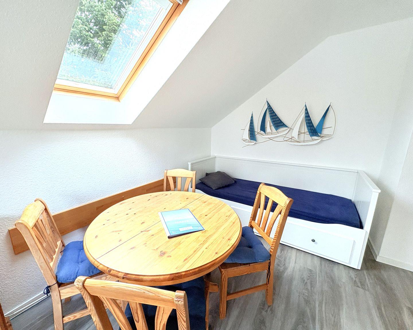 Die Ferienwohnung Milana befindet sich im Obergeschoss auf der Ostseite des Hauses und bietet auf 45 m² ein gemütliches Zuhause für bis 3 Personen.