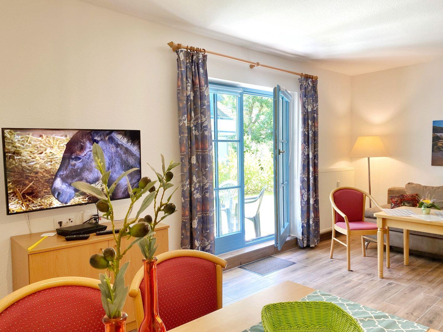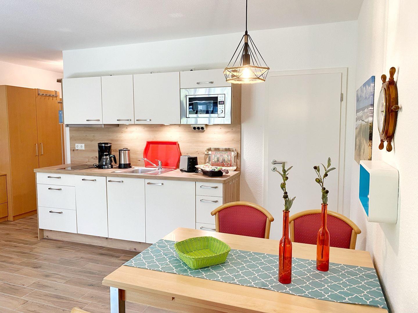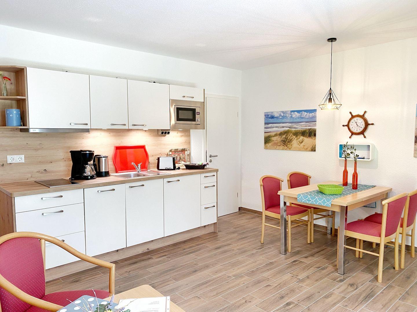 Die 2-Raum-Wohnung Nr. 03 in der Ferienanlage Kap Arkona mit Terrasse ist ausgestattet für 1 bis 4 Personen und hat eine Wohnfläche von ca. 46 m². Die Wohnung ist unterteilt in ein Schlafzimmer mit Doppelbett (1,80m x 2,00 m), ein Wohnzimmer mit integrierter Küchenzeile (Herd, Geschirrspüler), ein Bad mit Dusche sowie eine Diele. Im Wohnzimmer gibt es eine gemütliche Couch mit Bettfunktion für 1-2 Personen, + PKW-Stellplatz direkt am Haus (inklusive) Insgesamt sind die Ferienwohnungen eine kleine Oase der Gemütlichkeit. In der Anlage gibt es mehrere Wohnungen ähnlicher Größe, so dass auch befreundete Personen oder größere Familien hier schön zusammen ihren Urlaub verbringen können.