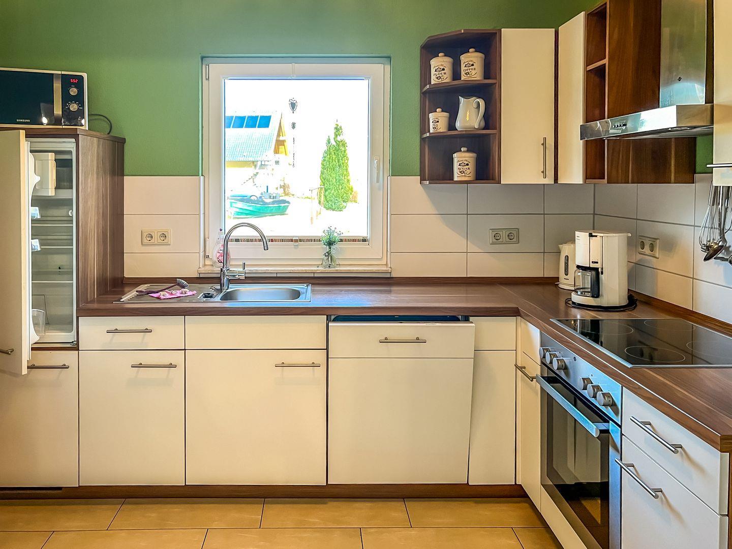 Die Ferienwohnung verfügt über eine offene Küche und einen separaten Essbereich.