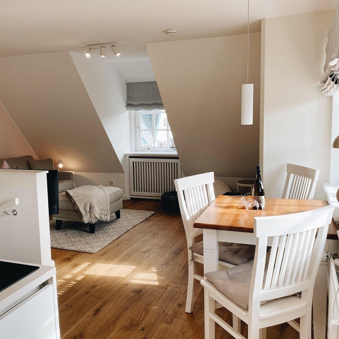 Zwischen dem ruhigen Watt und der tosenden Brandung der Westseite, ein kleine Oase der Stille in der man die Seele herrlich baumeln lassen kann. Dachgeschoss-Apartment mit