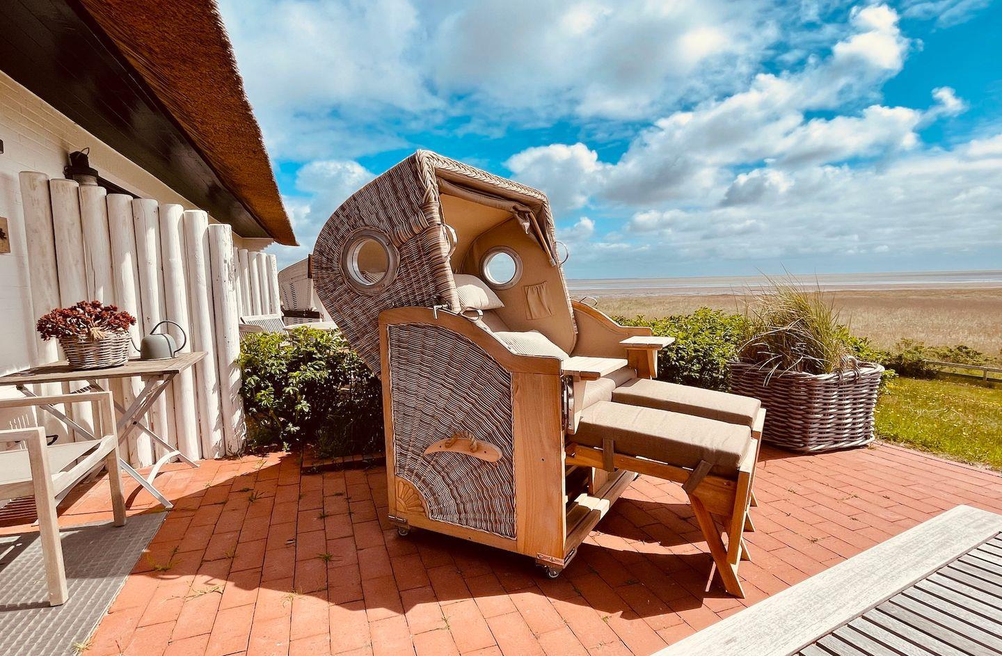 Süd-Ost Terrasse mit faszinierendem Weitblick über das Wattenmeer. Von hier aus