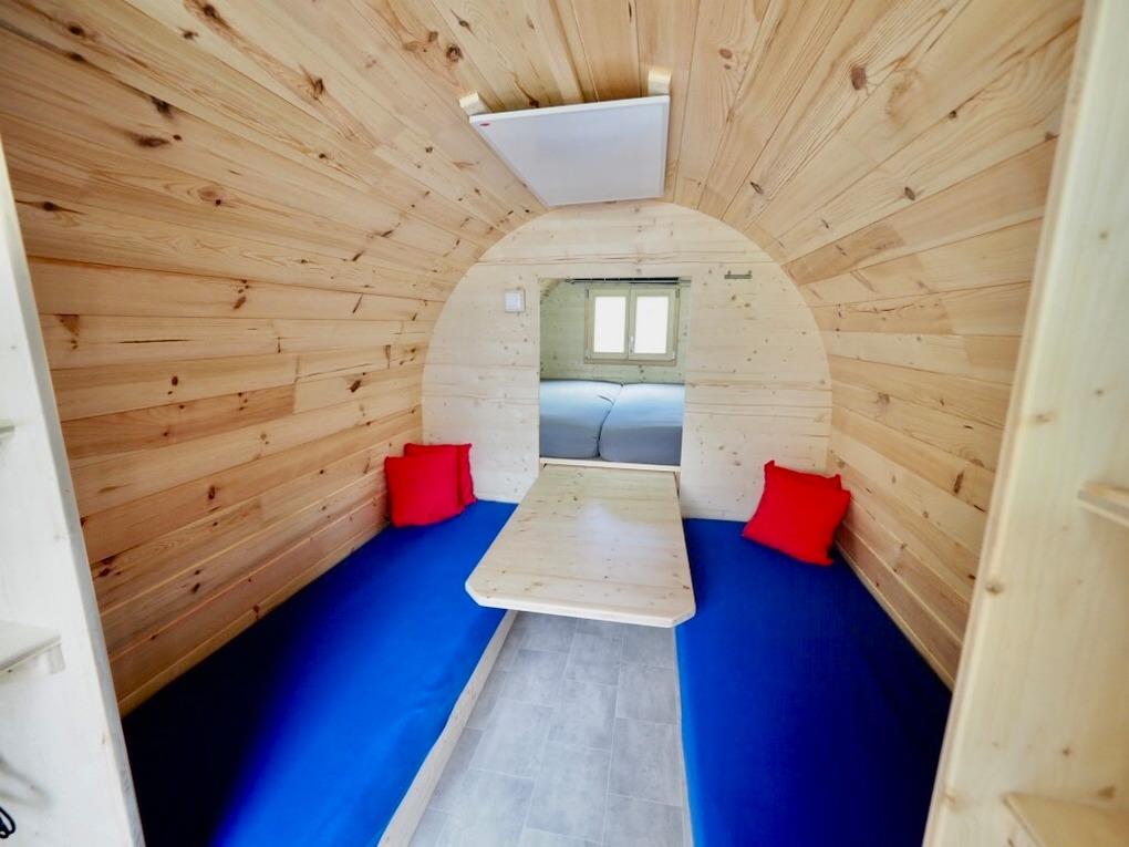 Gemütliche Holzhütte auf unserem Campingplatz, der direkt am Ufer des Bodensee gelegen ist.