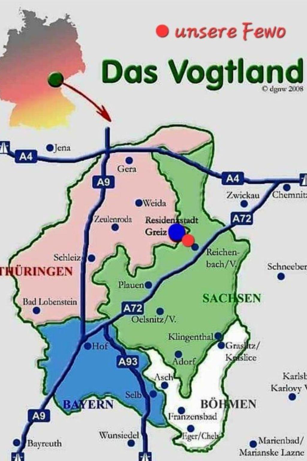 Discover the beautiful Vogtland from our holiday flat, which offers the perfect starting point for your holiday with its cosy furnishings, quiet location and variety of cultural and natural attractions in the surrounding area. Look forward to a relaxing time in Mylau and let yourself be welcomed by the warm atmosphere of our holiday accommodation.