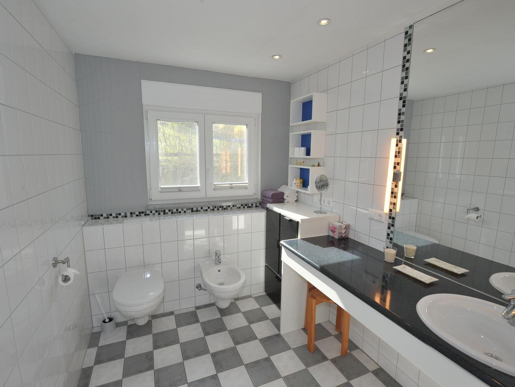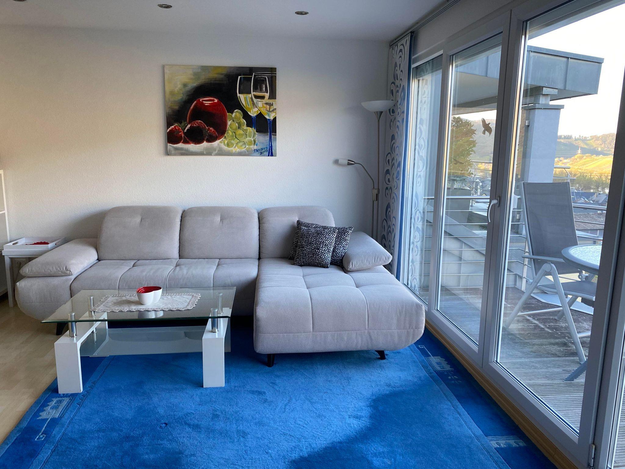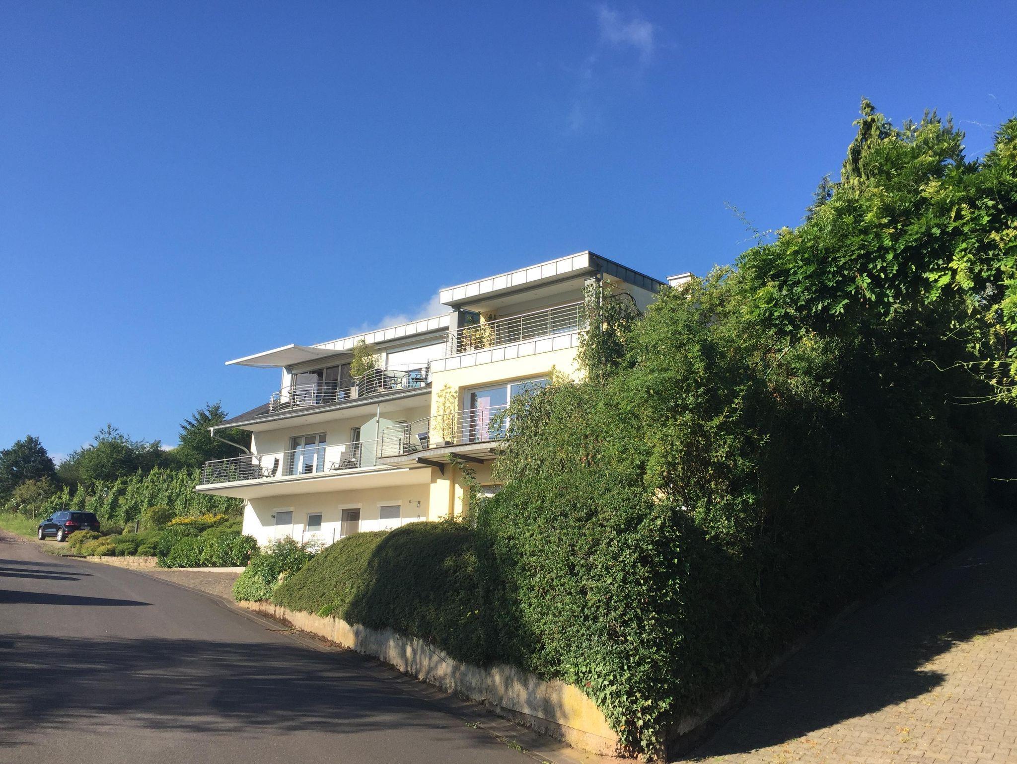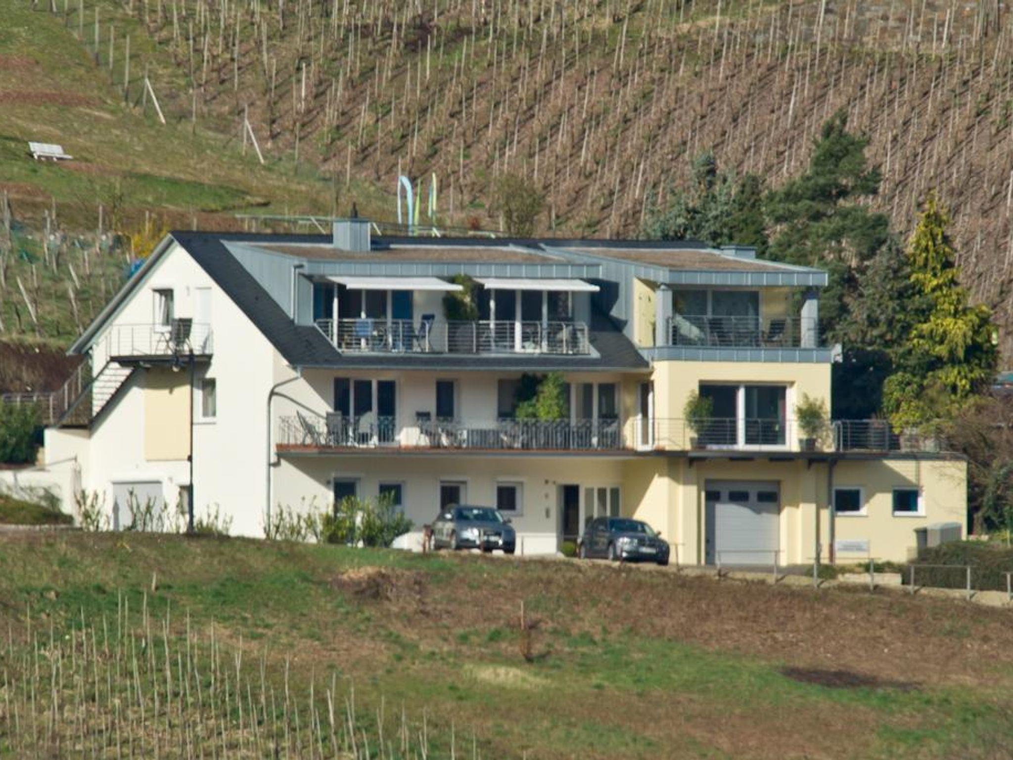 Die Wohnung verfügt über eine eigene Terrasse mit spektakulärem Panoramablick ins Moseltal. Mit Hilfe einer Markise kann man auch bei Sonnenschein im Schatten auf der Terrasse sitzen. Im Garten stehen Gartenmöbel und Liegen bereit zur Nutzung. Eigene, kostenfreie Parkplätze sind direkt am Haus. Es handelt sich um eine Nichtraucherwohnung. Auf den Terrassen oder im Garten kann gerne geraucht werden. Haustiere sind nicht erlaubt. Hund auf Anfrage. Die Wohnung befindet sich im 2.Stock. Im Flur steht ein Schrank mit Putzmitteln, Staubsauger, sowie Brettspielen, Spielkarten und Büchern bereit für unsere Gäste.