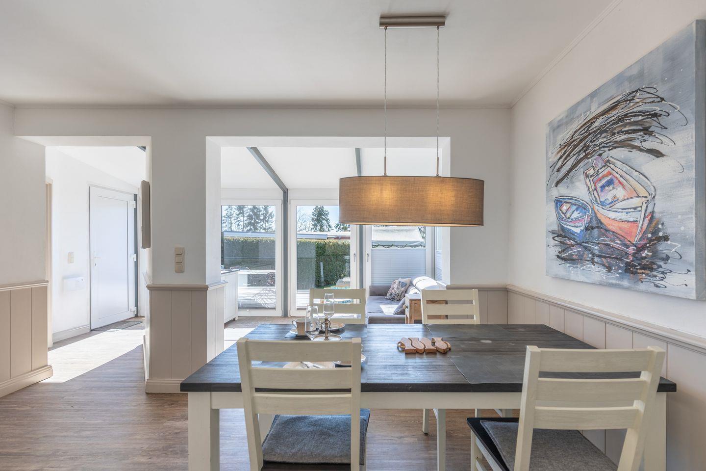 Dann sind Sie in unserem Ferienhaus nahe dem urigen Fischerdorf Stahlbrode genau richtig: Einen Kilometer entfernt vom idyllischen Hafen finden Sie eine ruhige und gepflegte Ferienhaussiedlung. Unser sehr komfortables und gerade komplett renoviertes Haus (Fertigstellung Ende 2016) kann sowohl im Sommer als auch im Winter genutzt werden. Die schöne Sonnen-Terrasse (Fertigstellung März 2017) und der Garten (350 qm) laden ein, die Seele baumeln zu lassen.