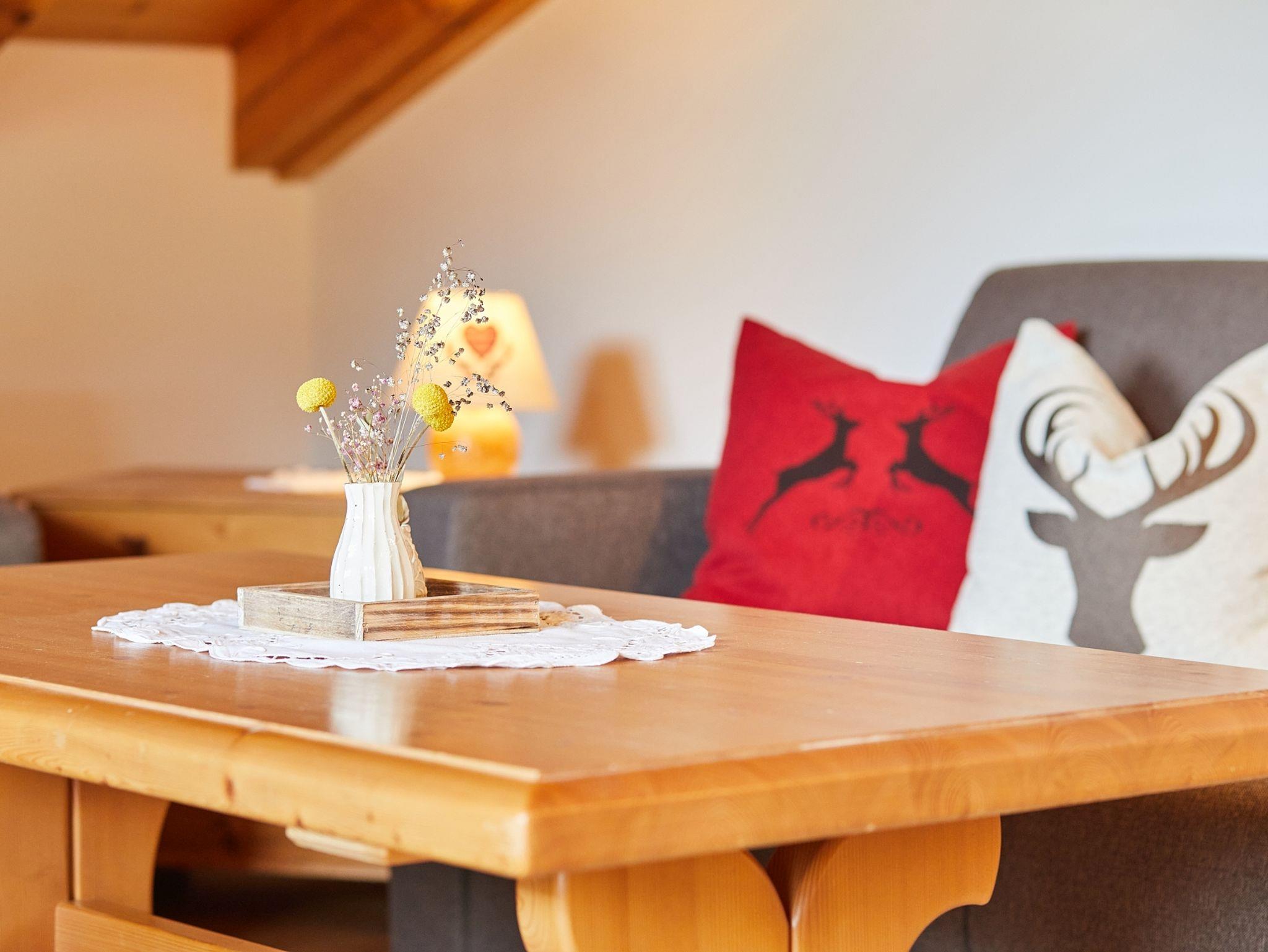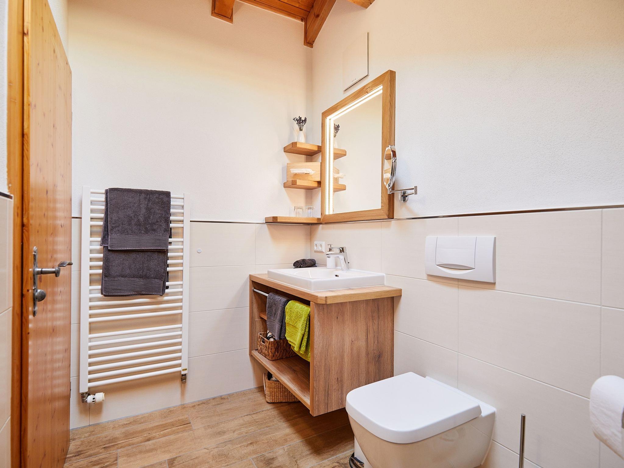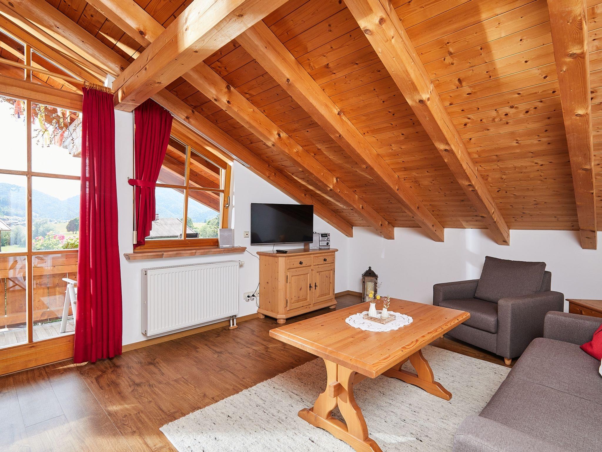Bei der geräumigen Zwei-Zimmer-Mansardenwohnung (2. Obergeschoß) haben wir vor allem auf Komfort und Gemütlichkeit geachtet. Mit 67 m² bietet die Wohnung für 2-4 Personen ausreichend Platz. Die abgestimmte Einrichtung im Landhausstil, sowie die liebevolle Dekoration und der Sichtdachstuhl mit Giebelverglasung machen die Wohnung besonders behaglich und laden zum entspannen ein. Vom Balkon aus blicken Sie in Richtung Osten zum Walmberg in den Ort. Er bietet Platz zum Frühstücken oder ein Gläschen Wein zu genießen.