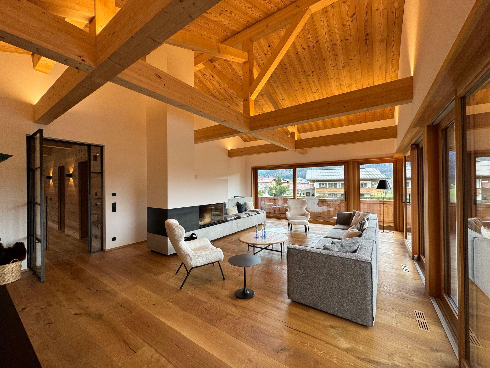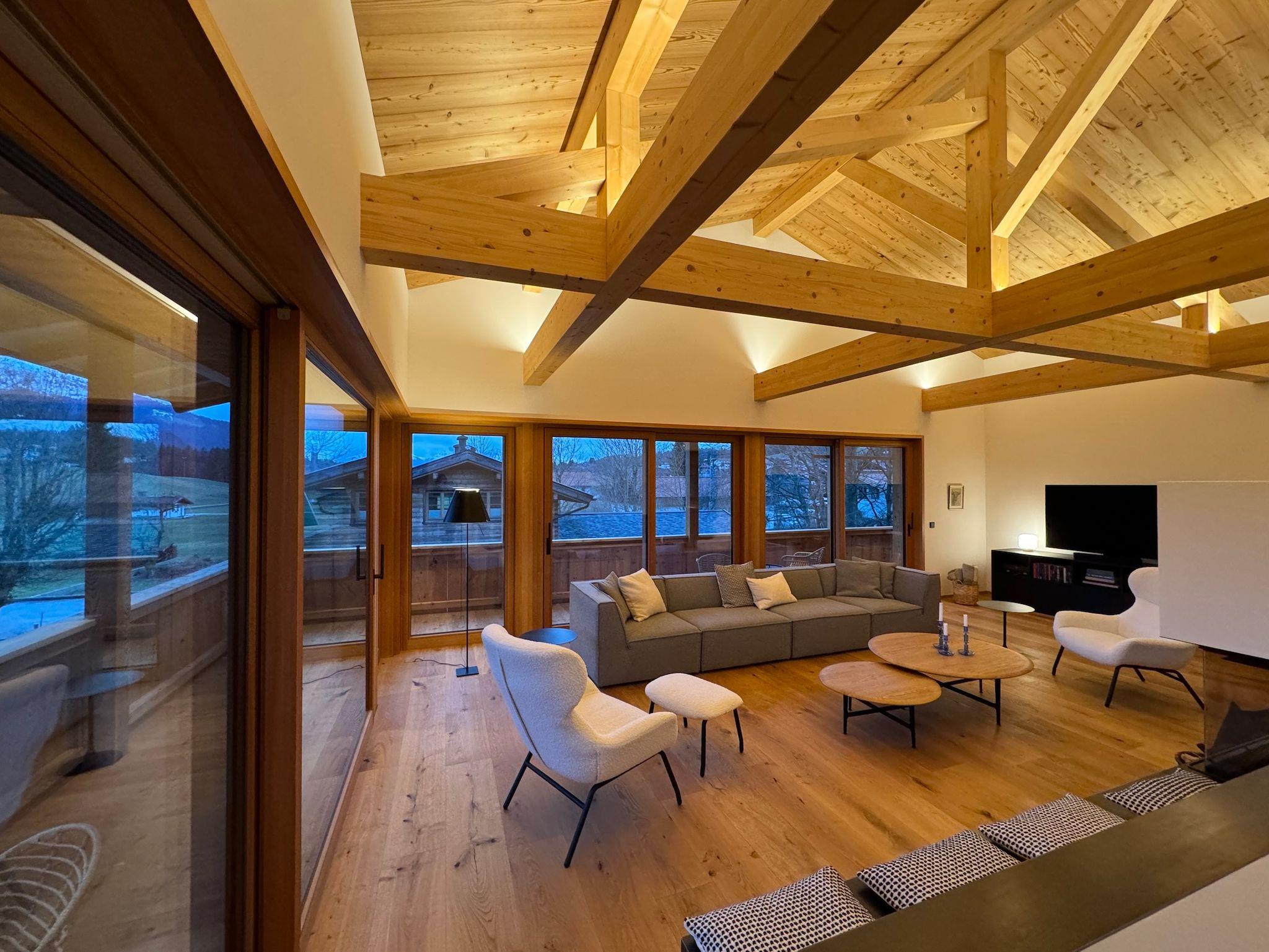Nur wenige Schritte vom Dorfzentrum Reit im Winkl und ebenso wenige Schritte vom Einstieg in das Panorama-Wander- und Wintersportgebiet befindet sich das 2023 erbaute, großzügige Ferien-Chalet Unterberg21.